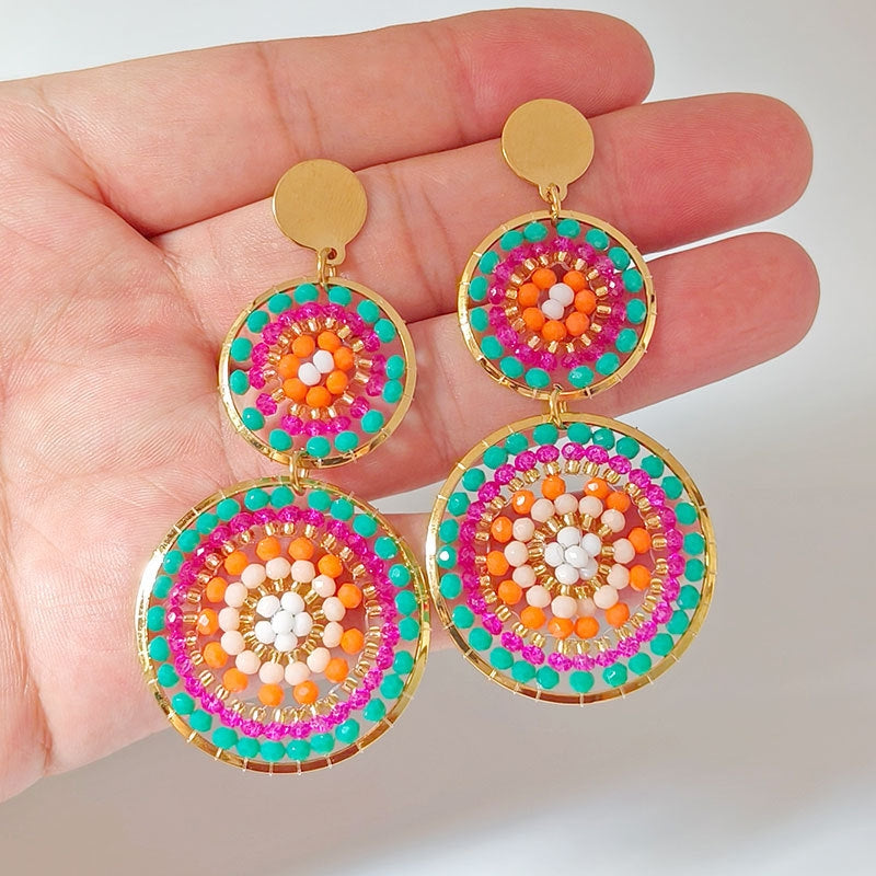 Bohemian Geometric Glass Seed Bead Handmade Earrings