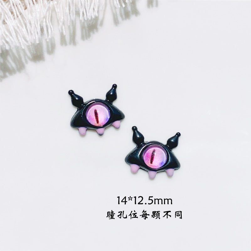 Cartoon Animal Eye Alloy Opal Stud Earrings and Halloween Demon Nail Art Decorations