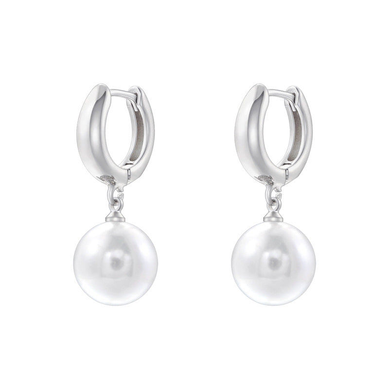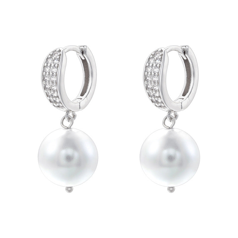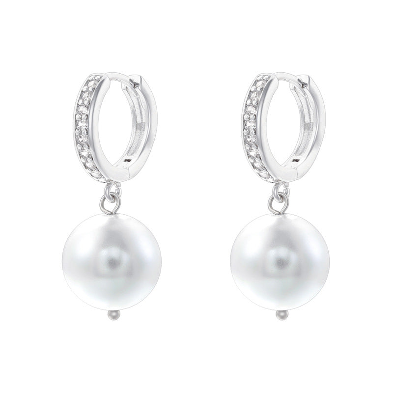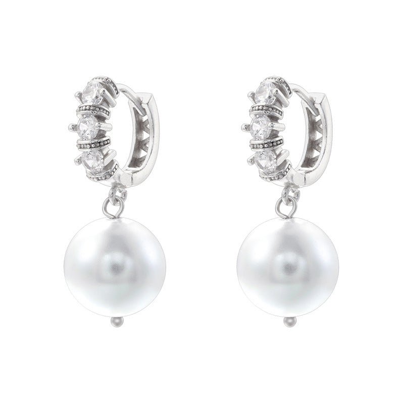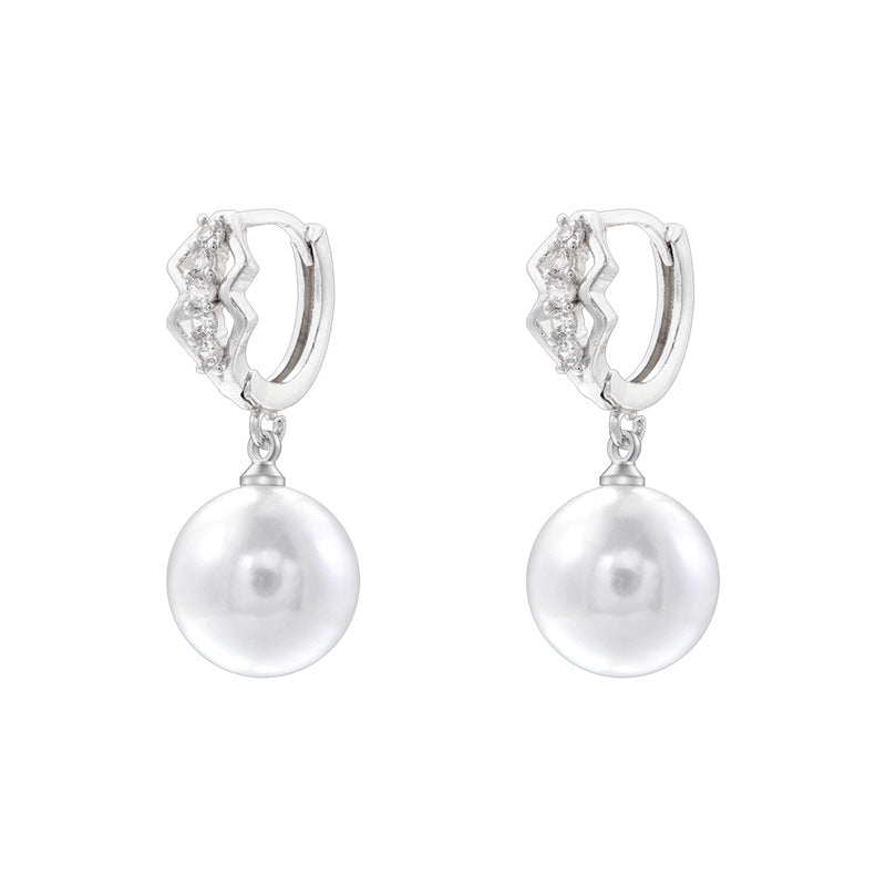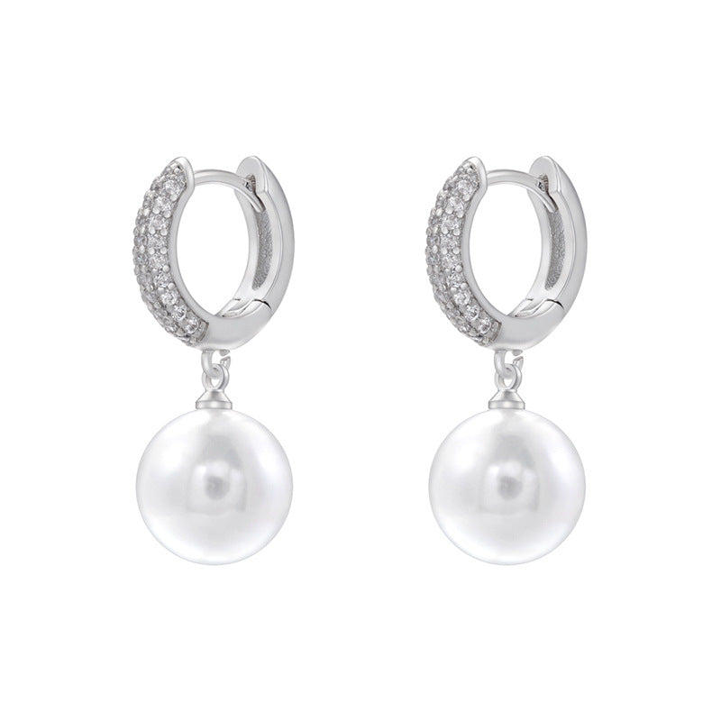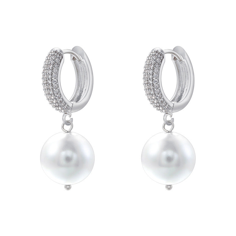 1 Pair Elegant Round Inlay Copper Pearl Zircon 18K Gold Plated Drop Earrings