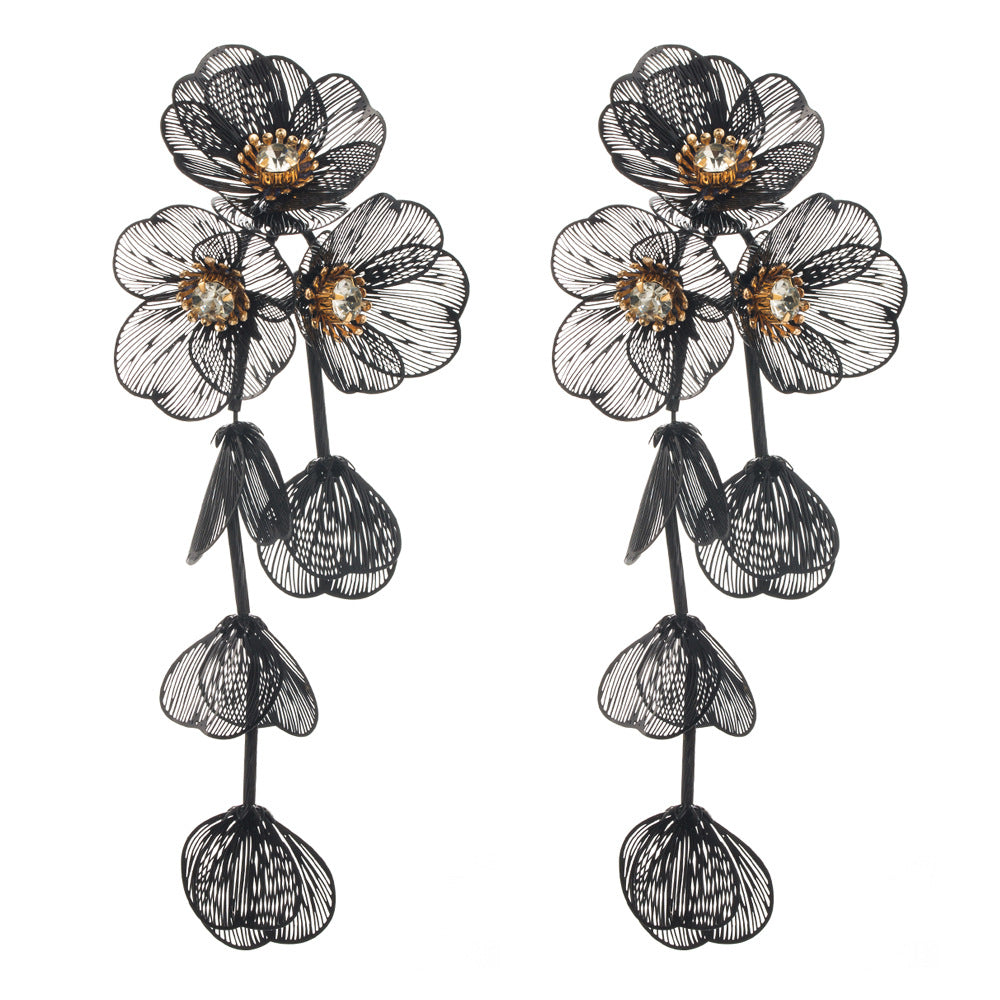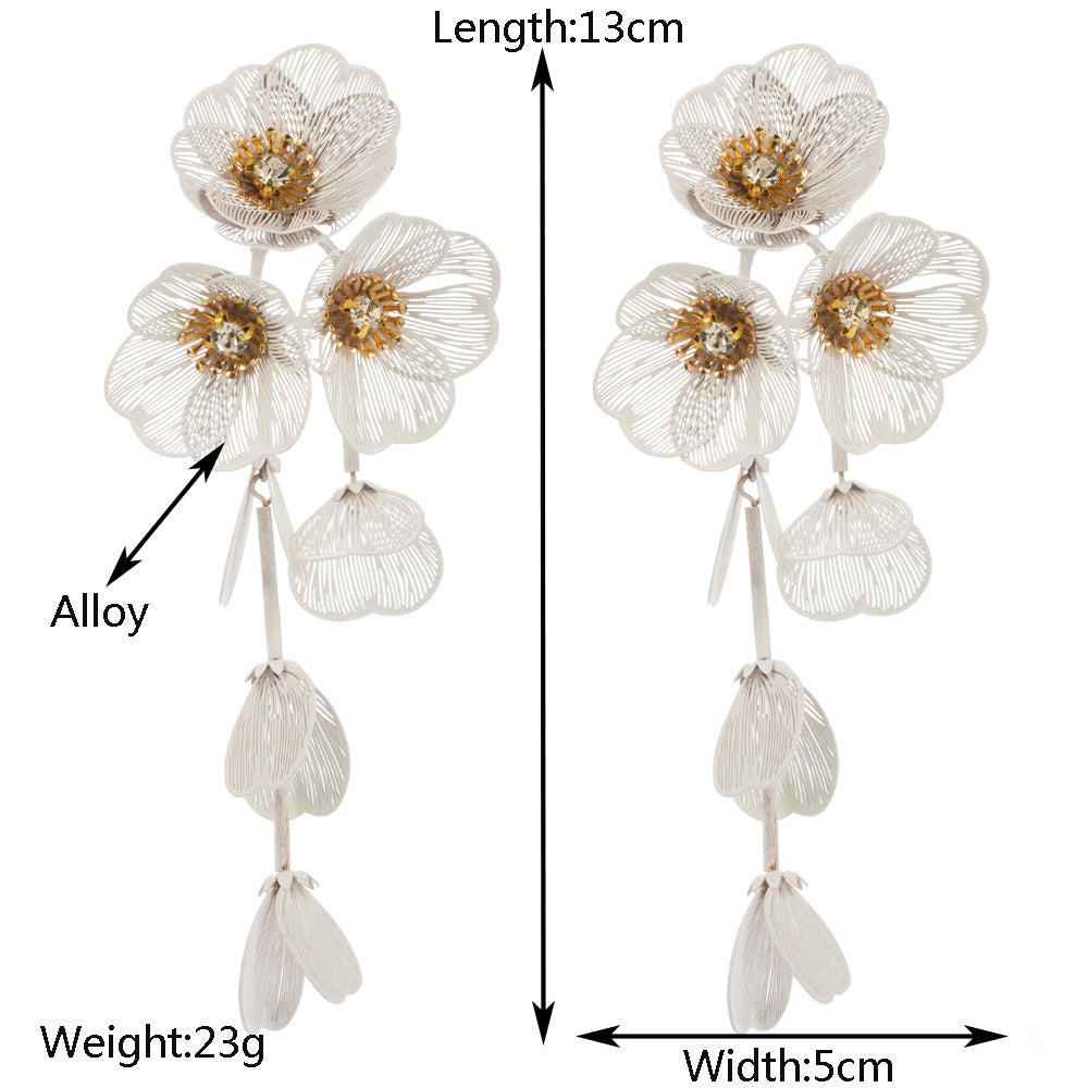 1 Pair Casual Elegant Vacation Flower Inlay Alloy Rhinestones Silver Plated Layered Drop Earrings