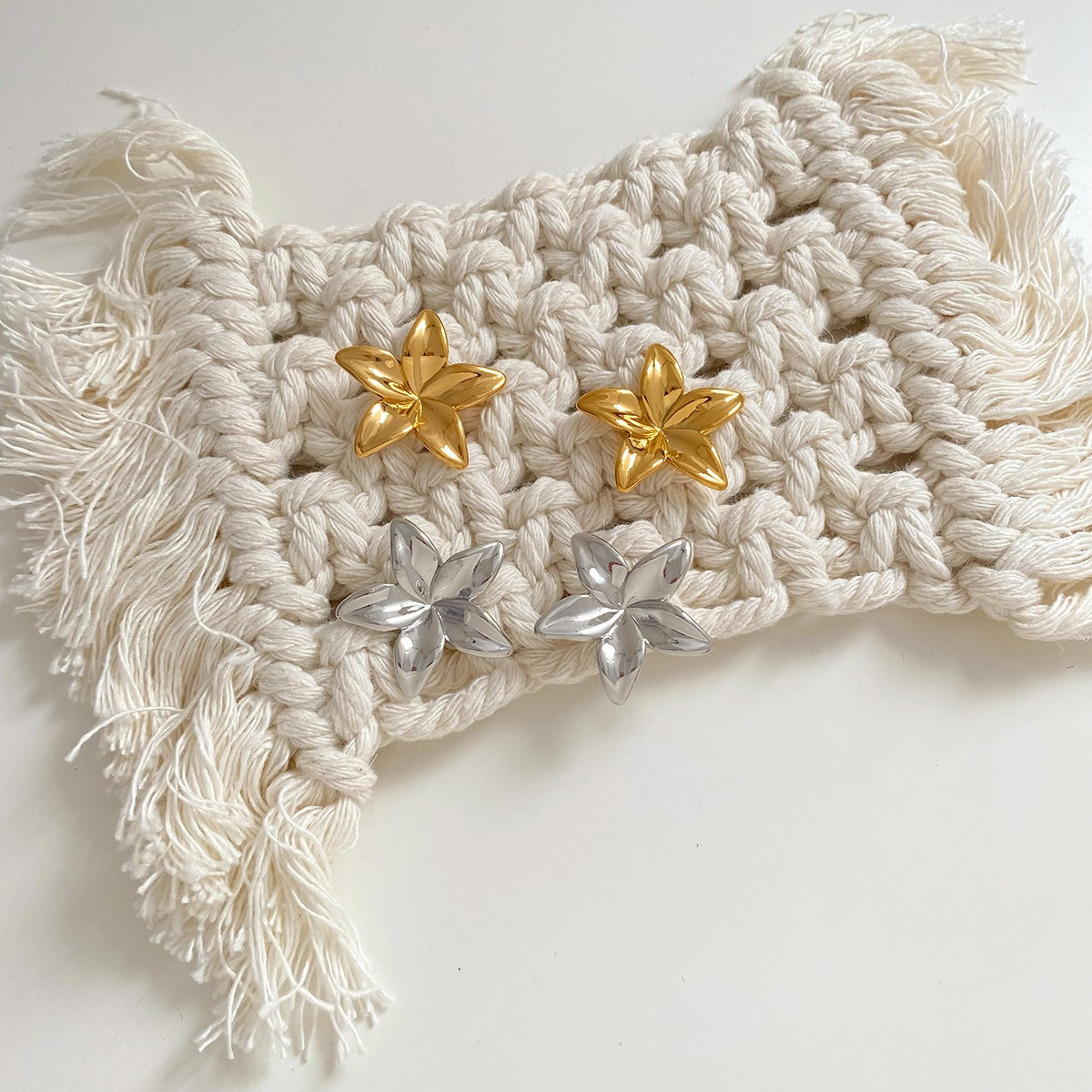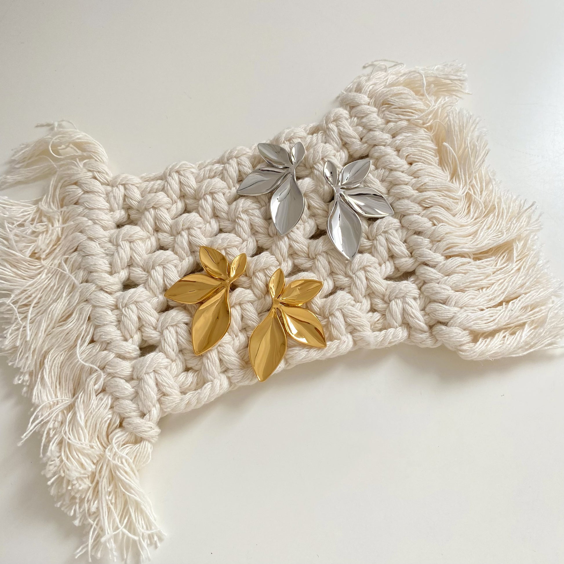1 Pair Modern Leaf Flower Design 16K Gold & White Gold Plated Stainless Steel Earrings