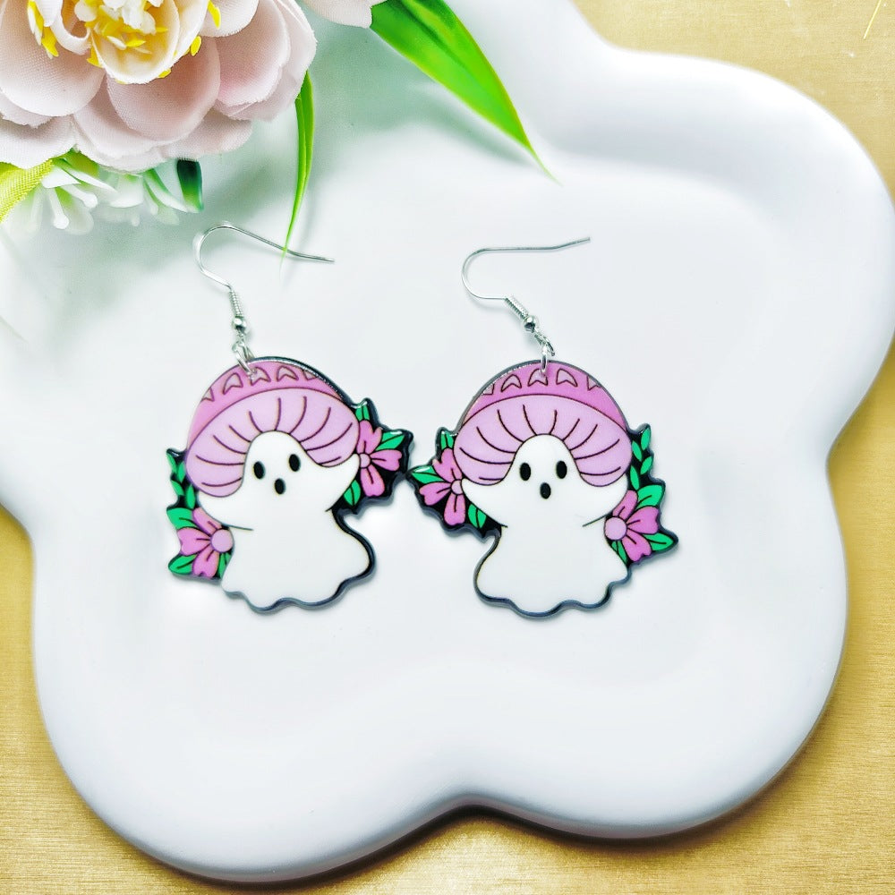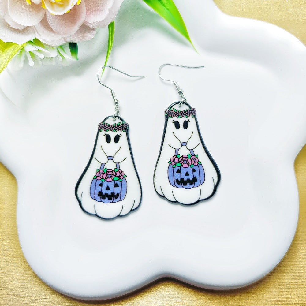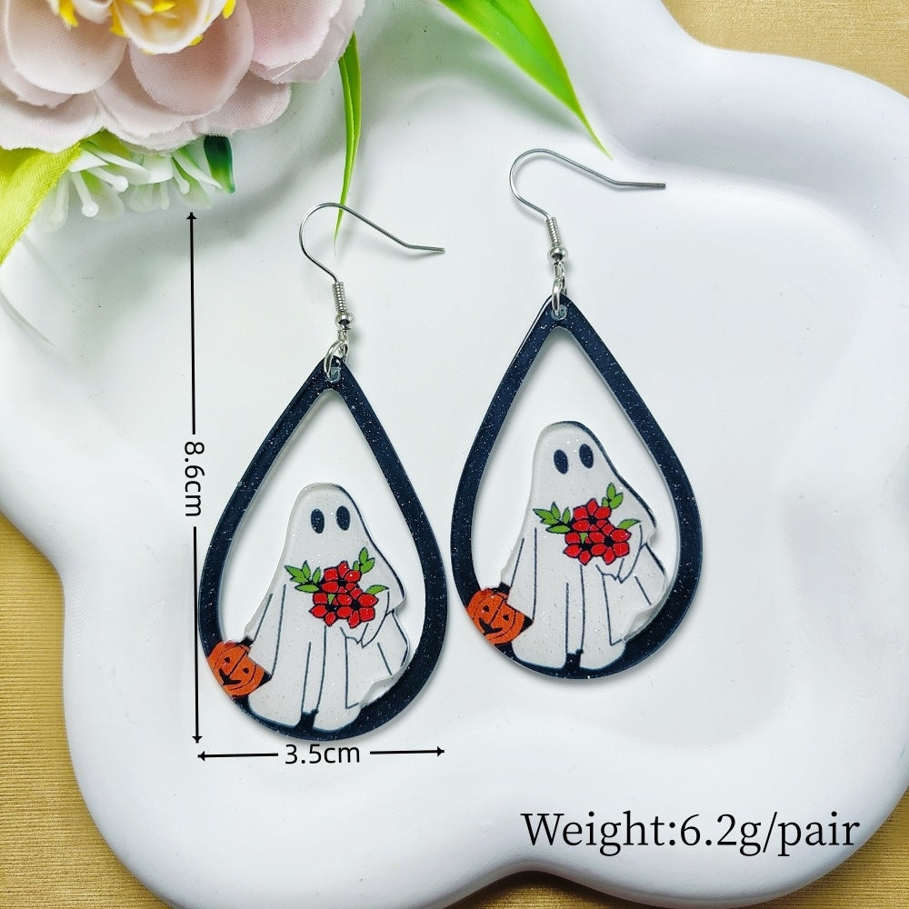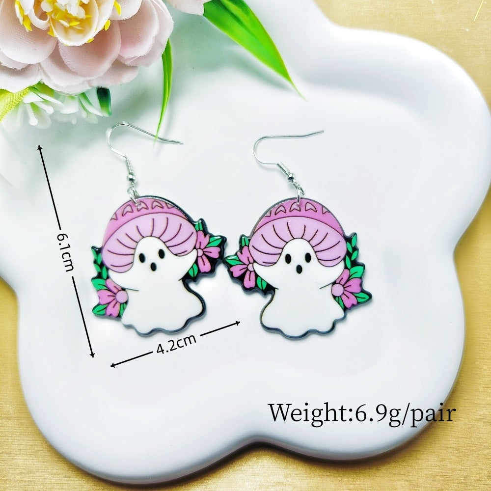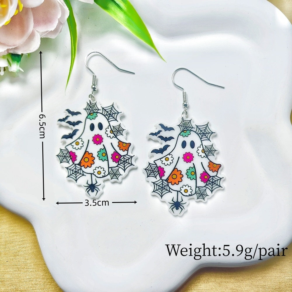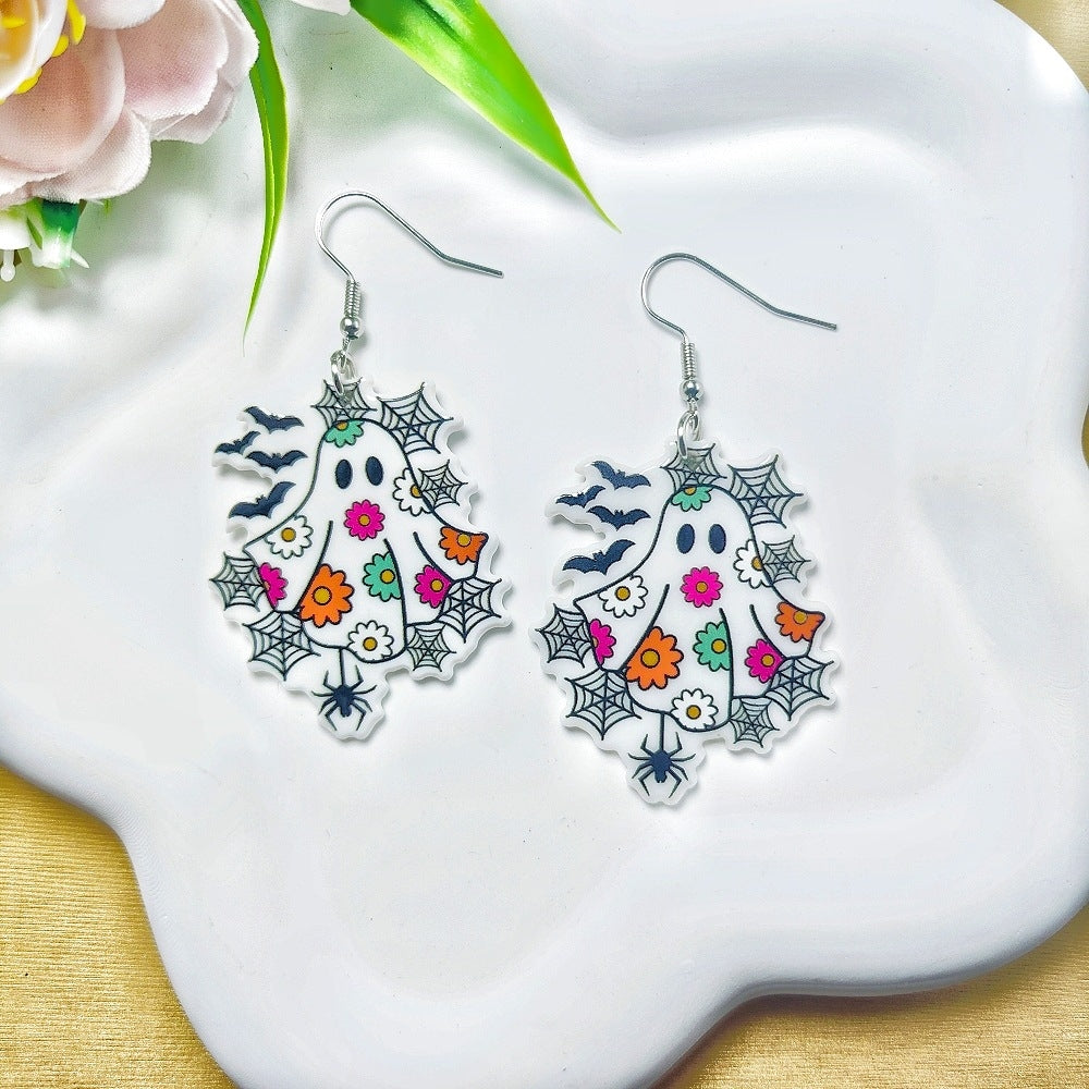 1 Pair Acrylic Floral Ghost Print Drop Earrings