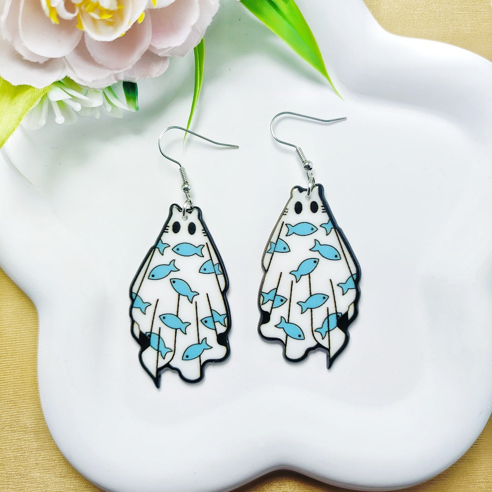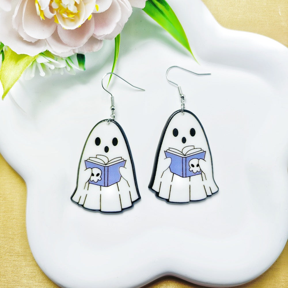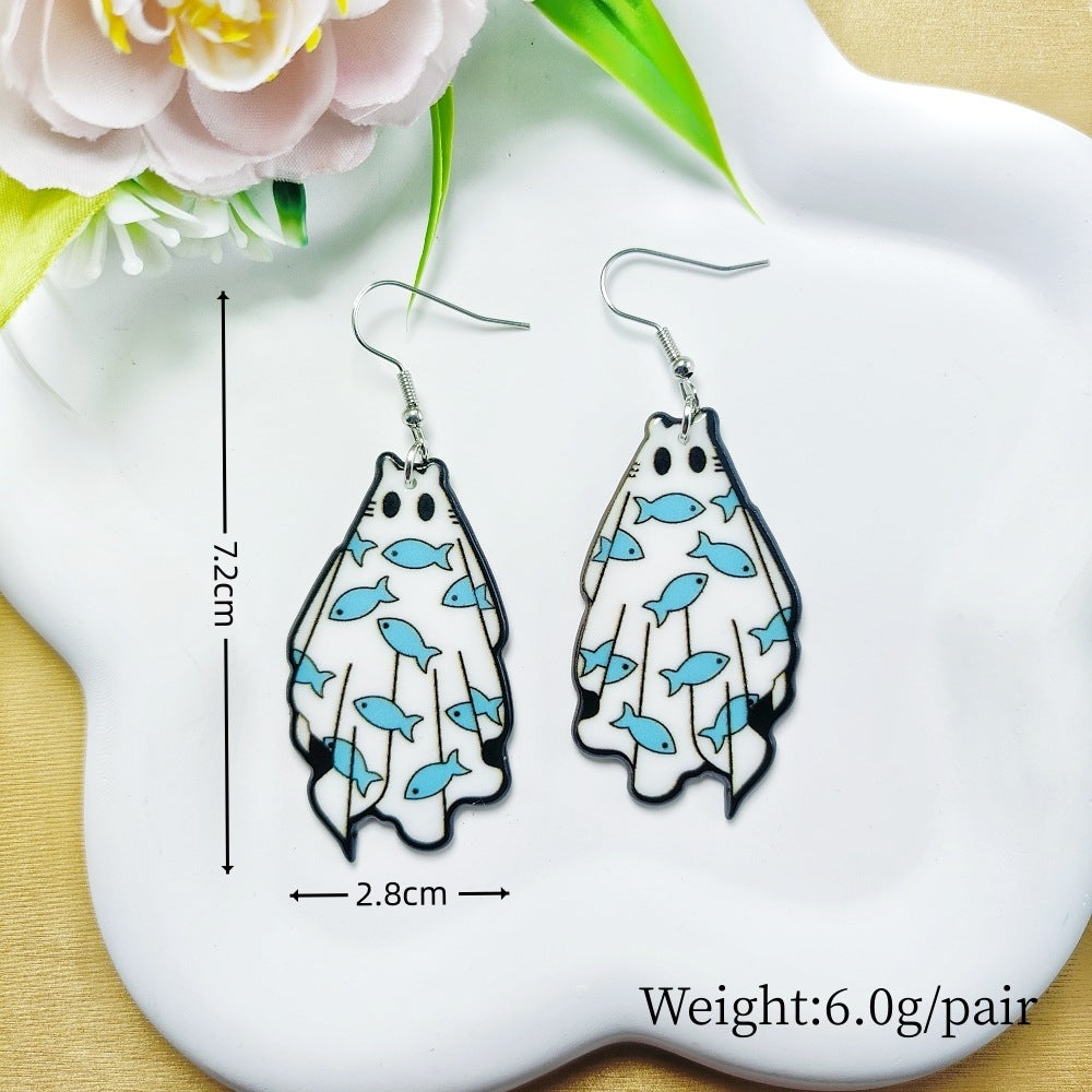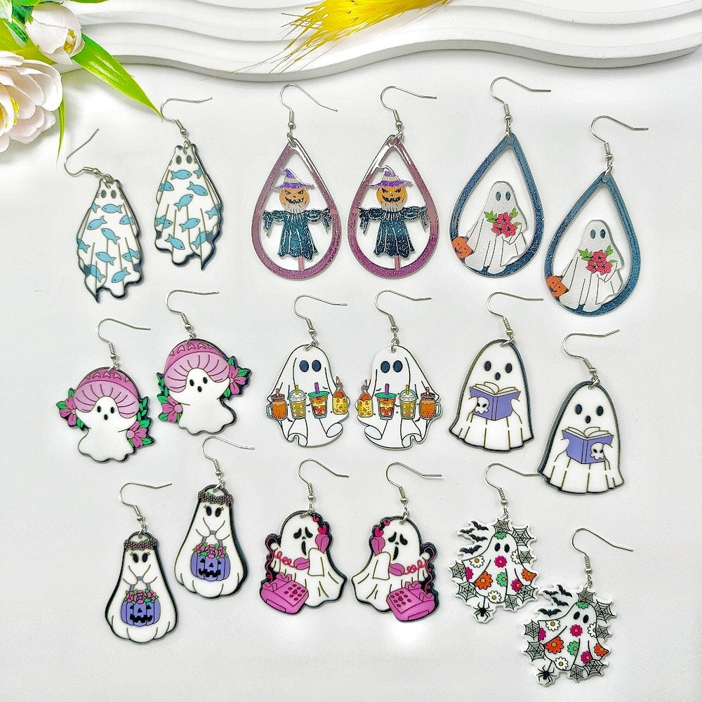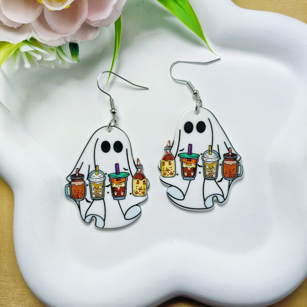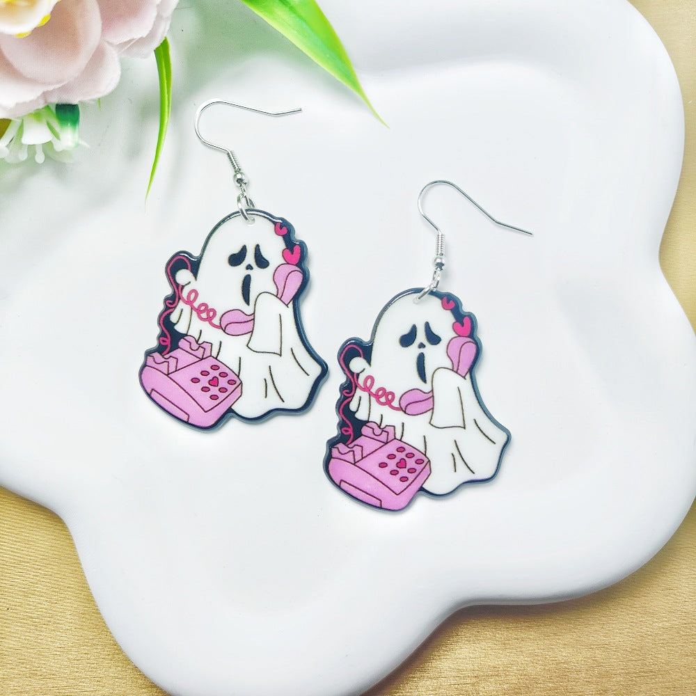 1 Pair Acrylic Floral Ghost Print Drop Earrings