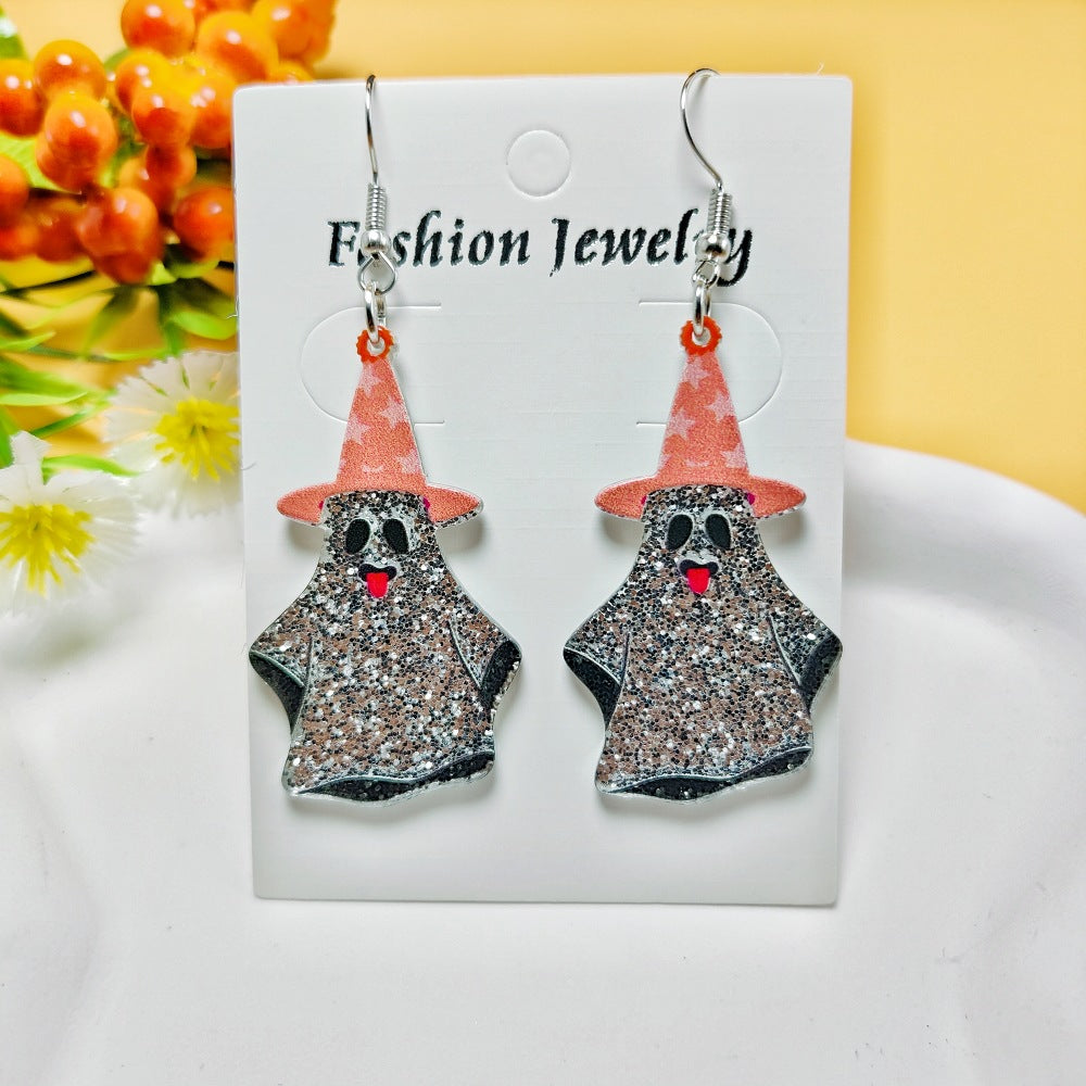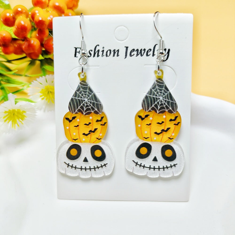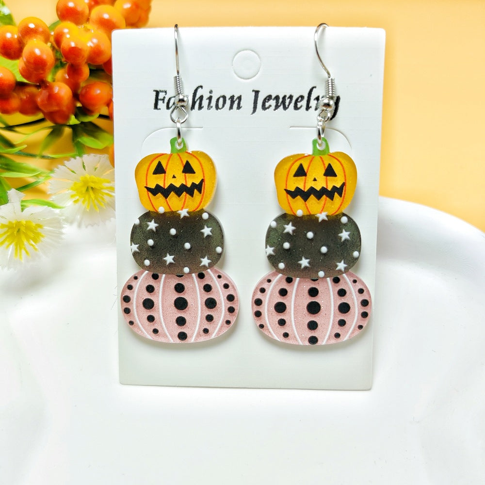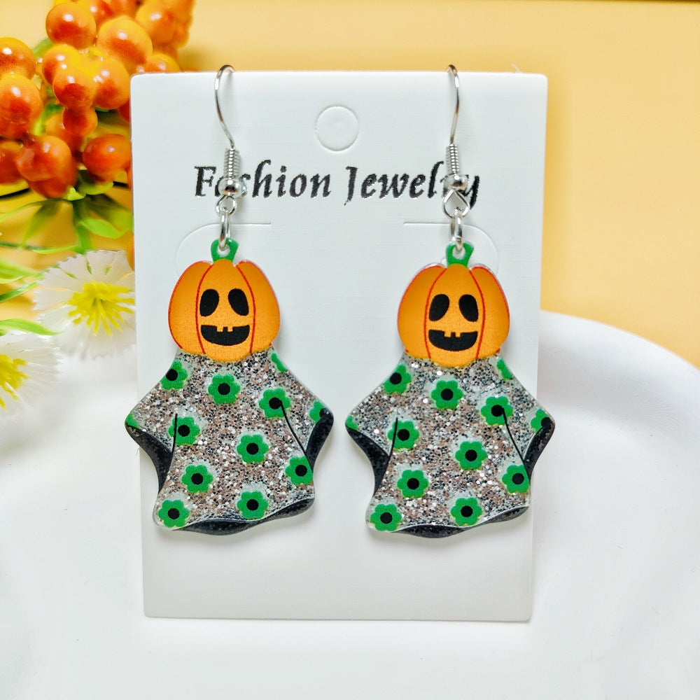 1 Pair Halloween Geometric Pumpkin Ghost Acrylic Drop Earrings