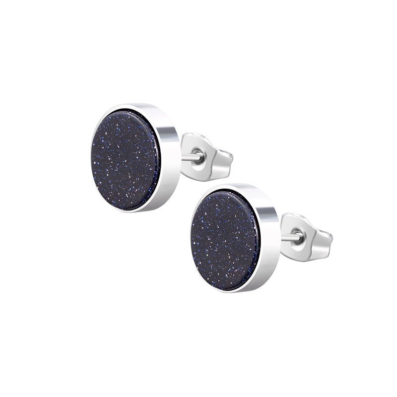 1 Pair Minimalist Round Stainless Steel Natural Stone Stud Earrings