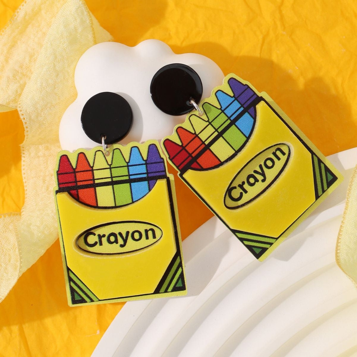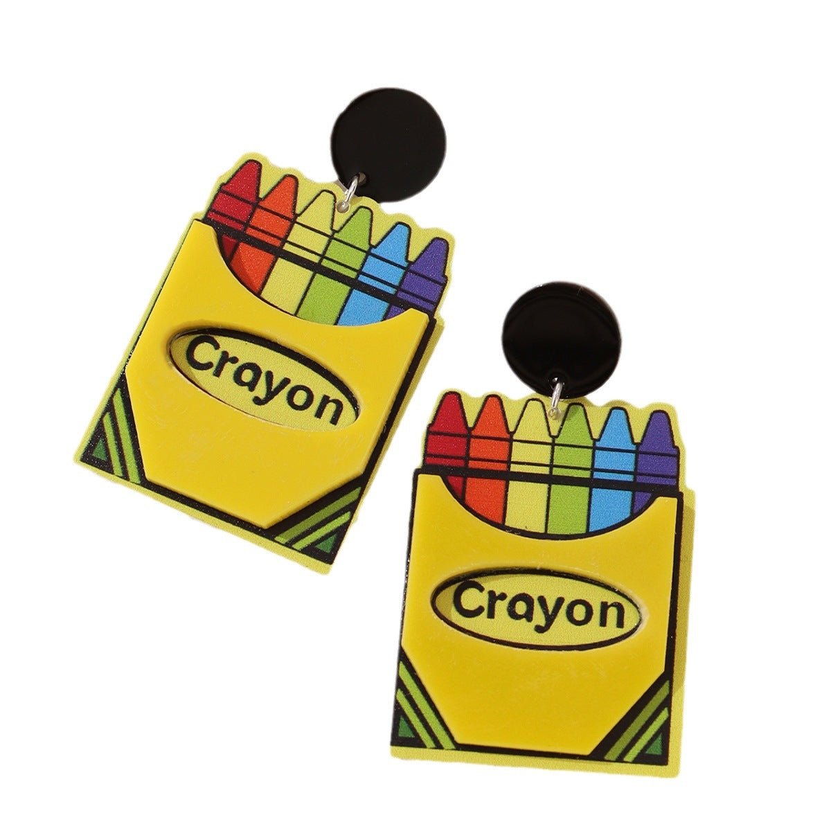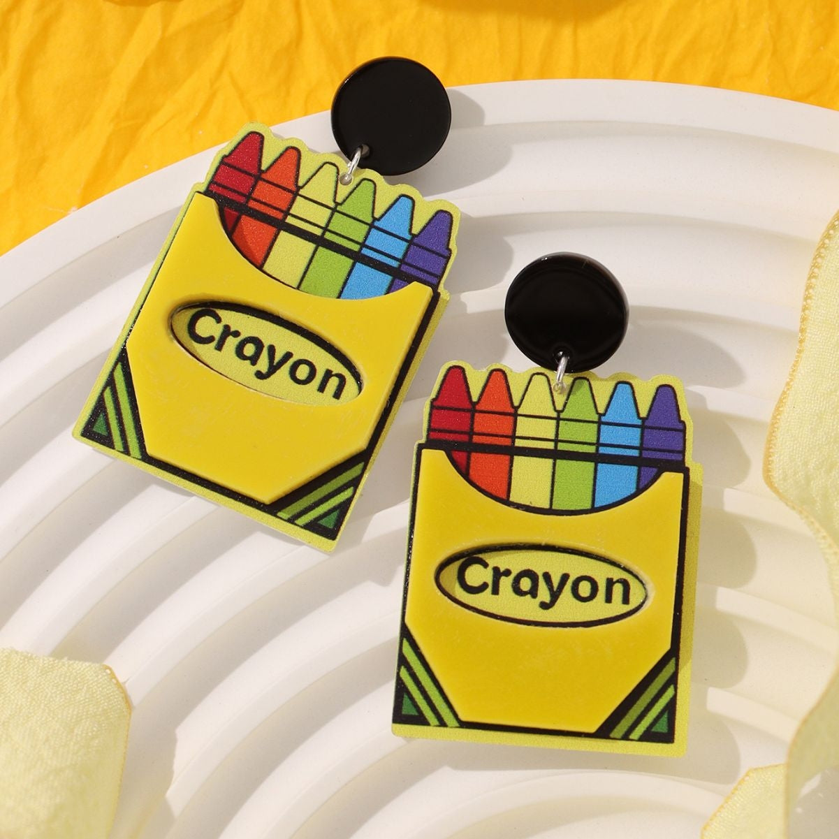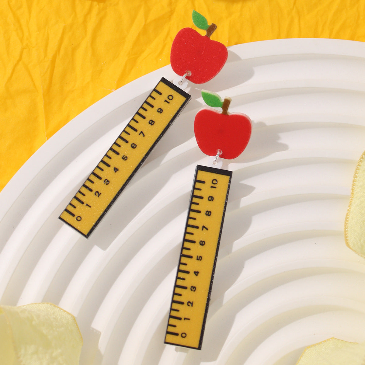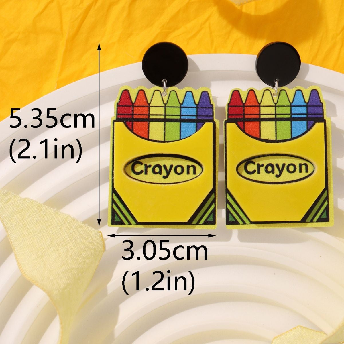 1 Pair Colorful Geometric Resin Pencil Ruler Drop Earrings
