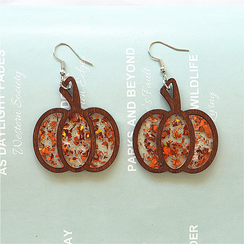 1 Pair Retro Pumpkin Acrylic Wood Drop Earrings for Halloween