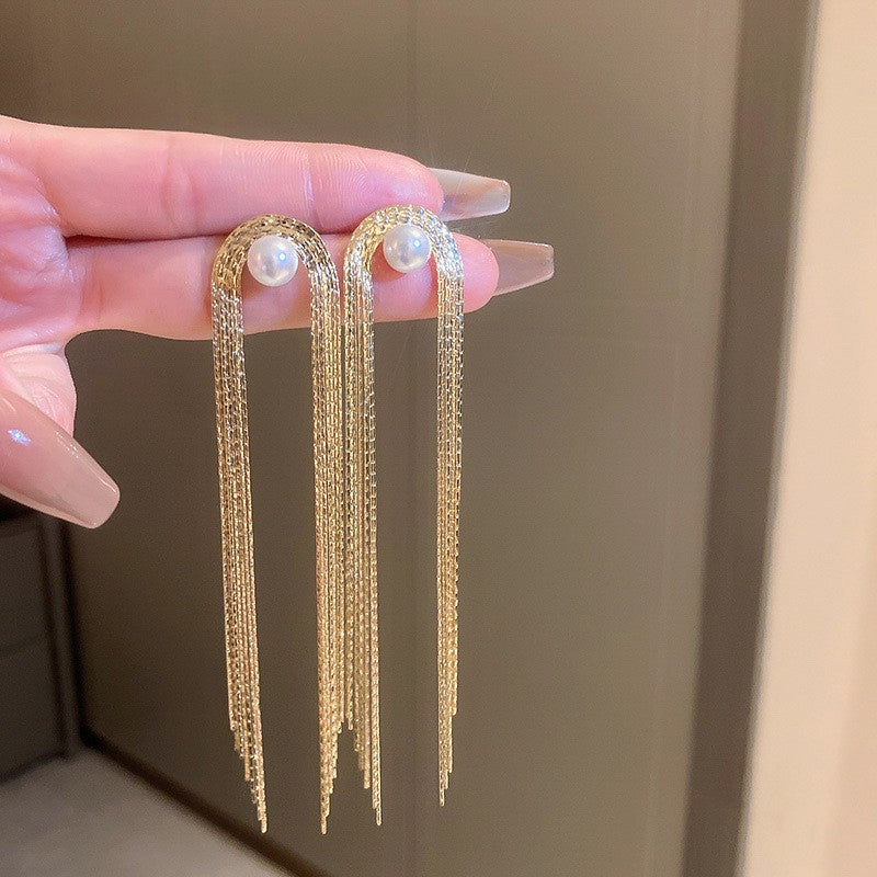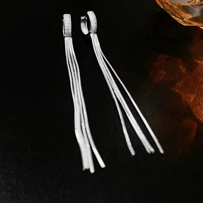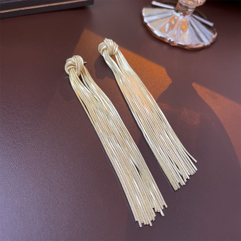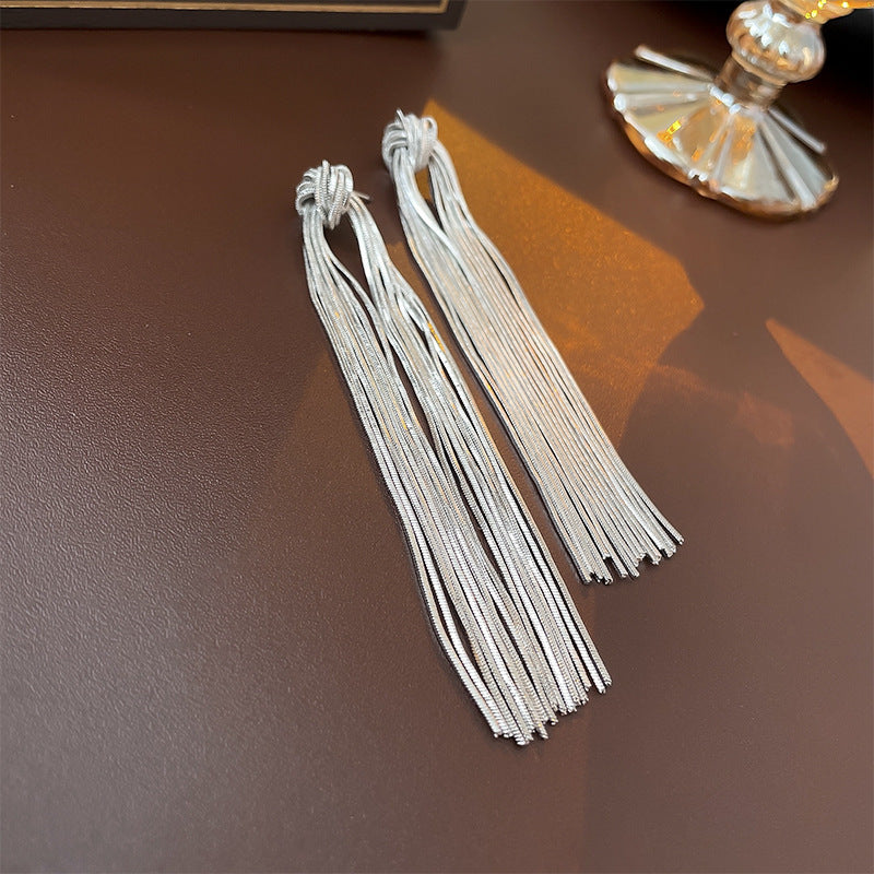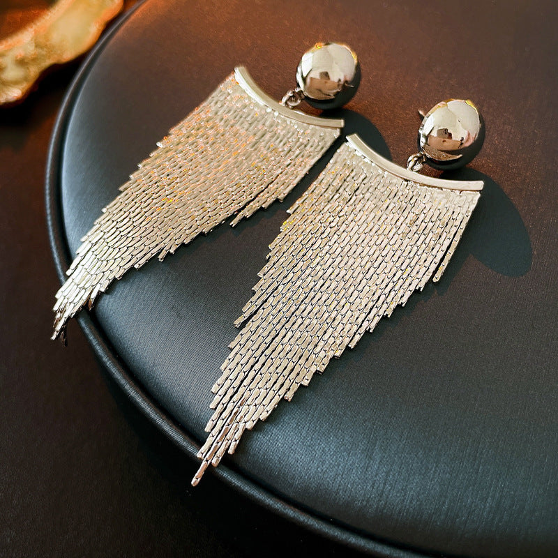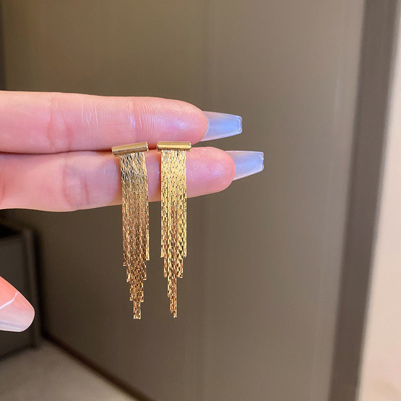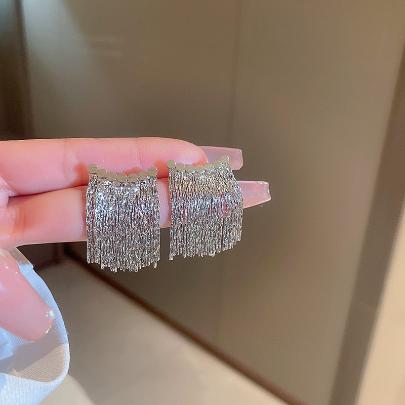 Elegant Geometric Tassel Copper Drop Earrings with Rhinestone Chain