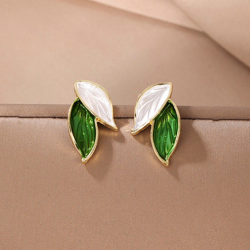 Elegant Korean Leaf Enamel Alloy Stud Earrings with S925 Silver Needle