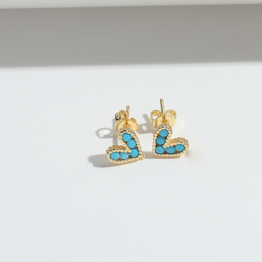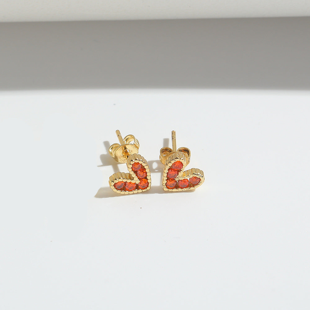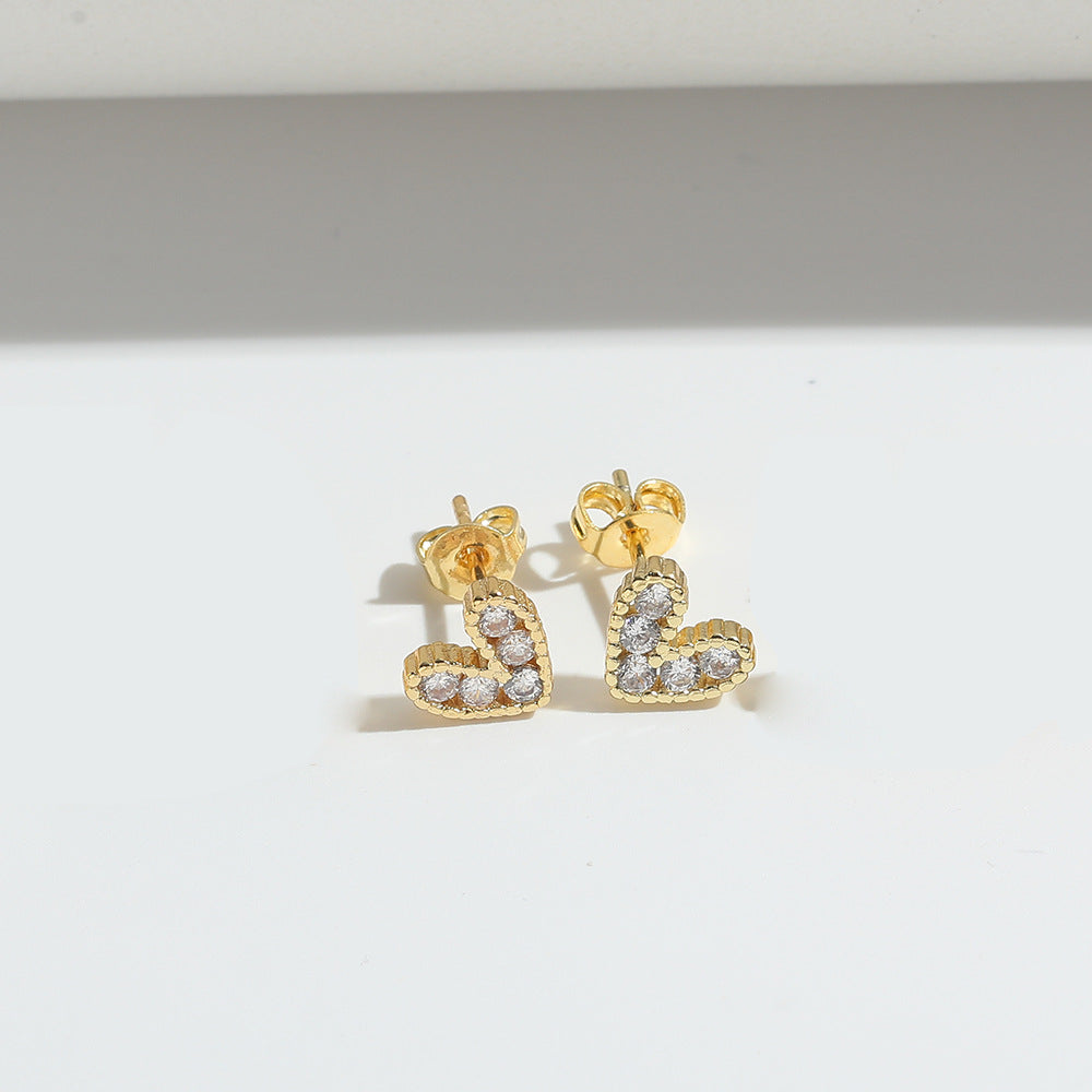 1 Pair Elegant Heart Shape Zircon 14K Gold Plated Copper Ear Studs