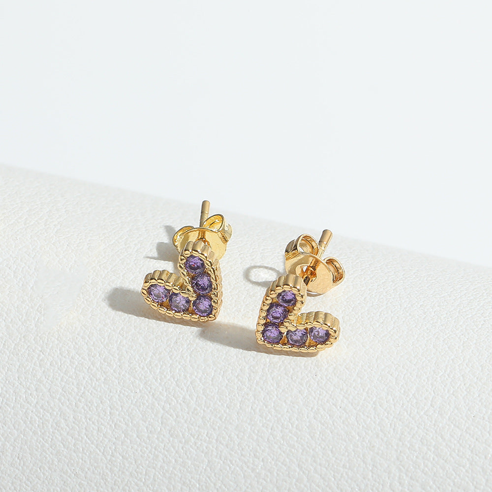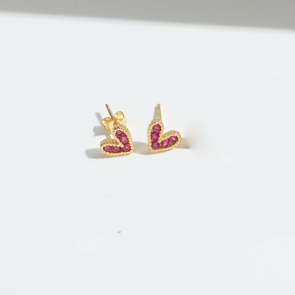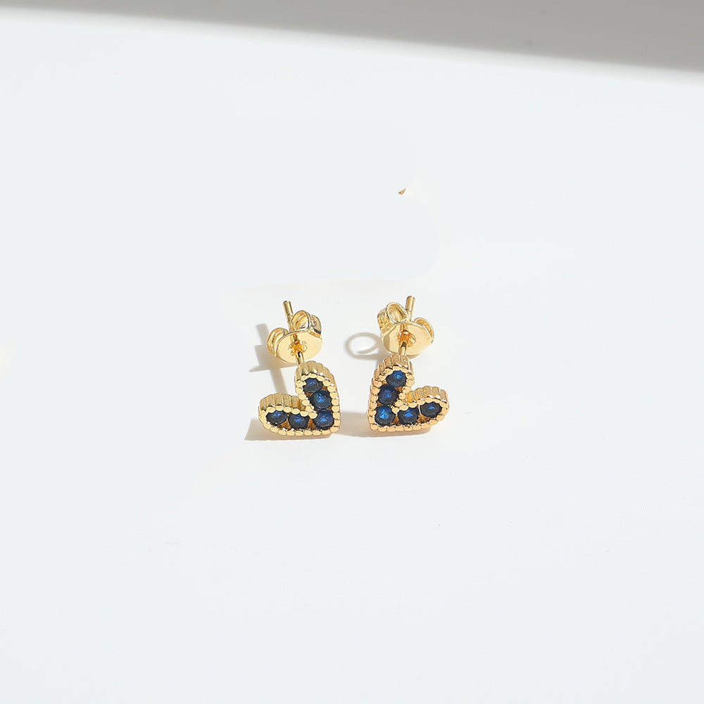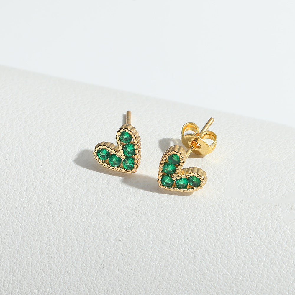 1 Pair Elegant Heart Shape Zircon 14K Gold Plated Copper Ear Studs