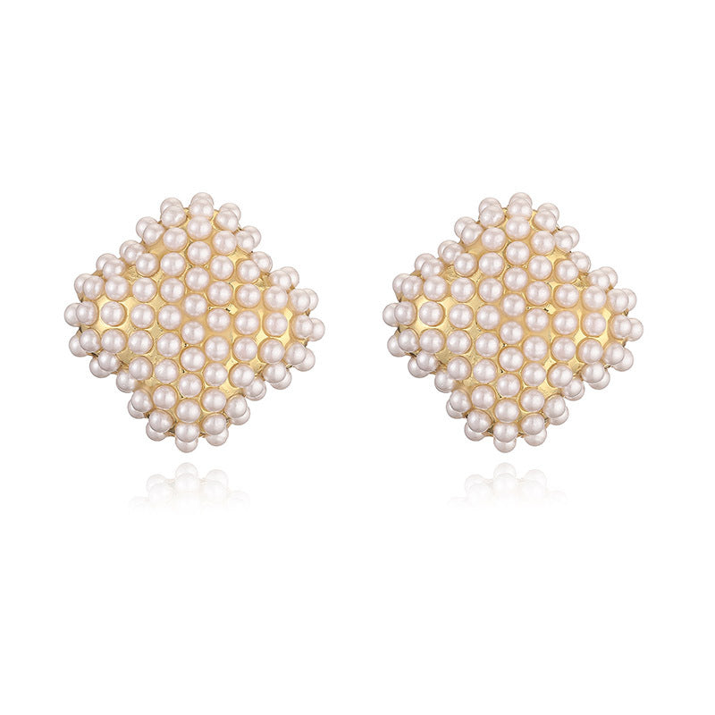 Elegant Pentagram Heart Rhombus Pearl 18K Gold Plated Copper Stud Earrings