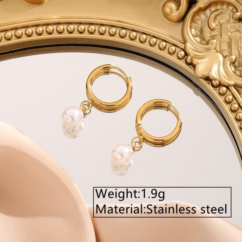 Elegant Geometric 18K Gold Plated Stainless Steel Pearl Drop Earrings