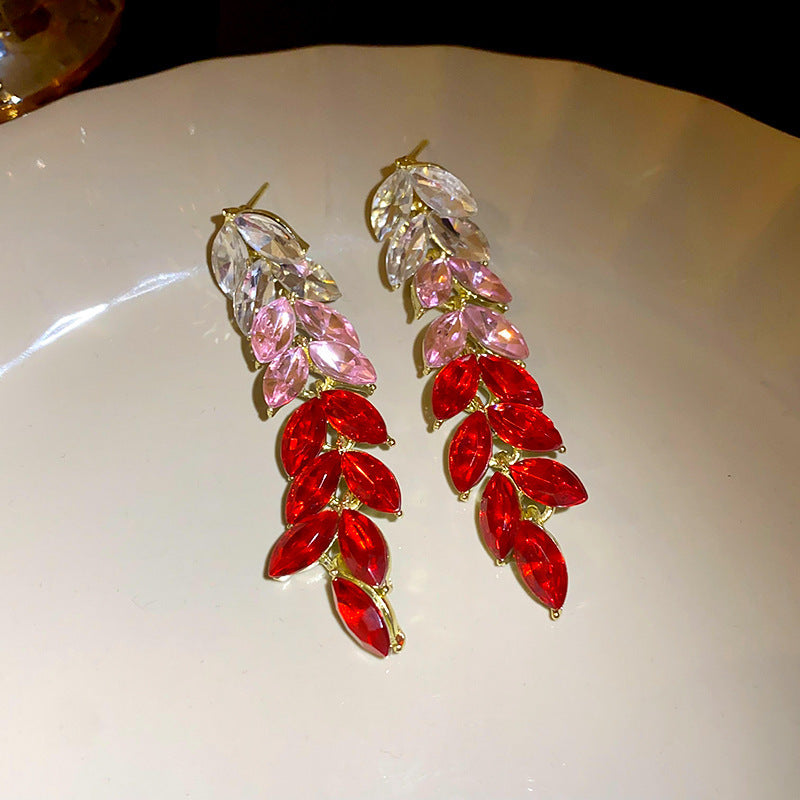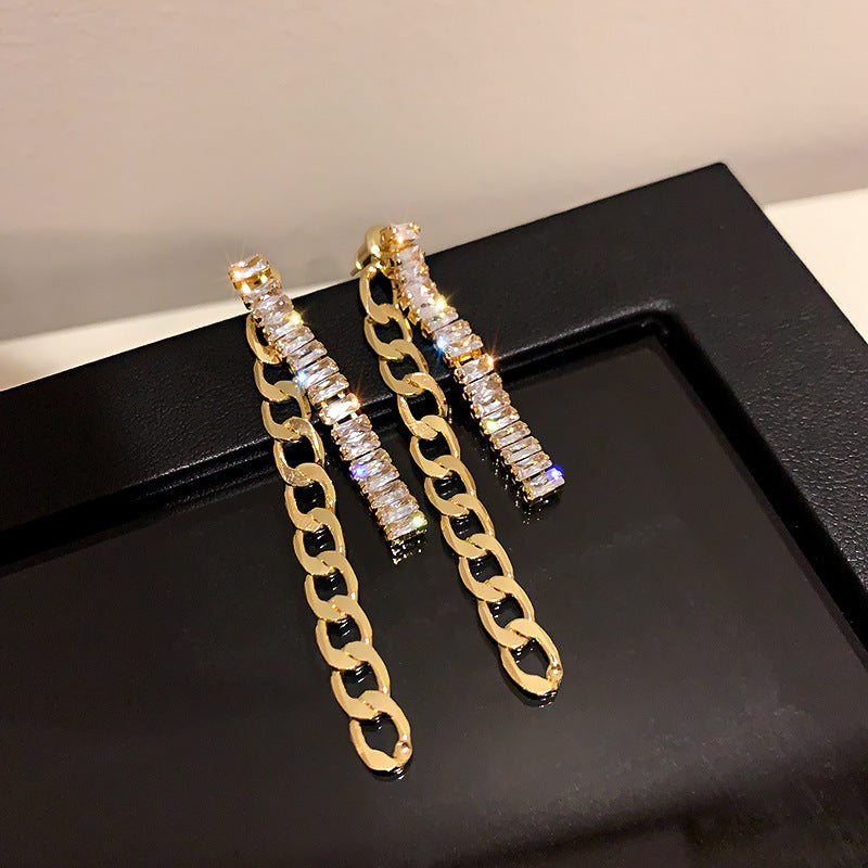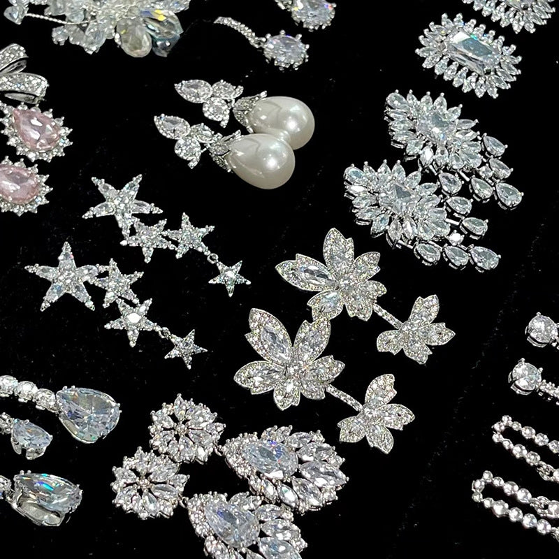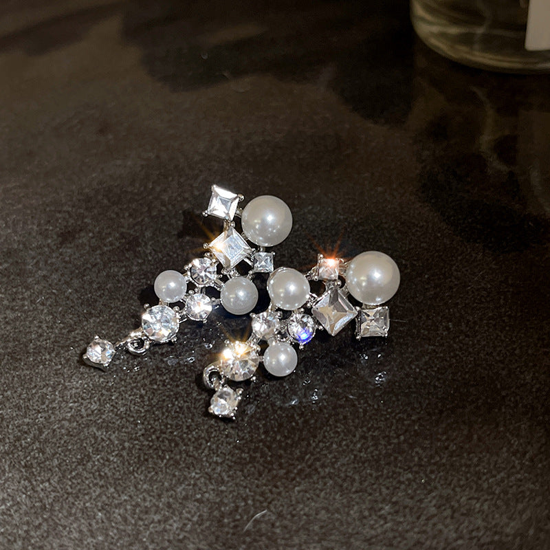 Elegant Rhinestone Flower Drop Earrings - Square Stud Design