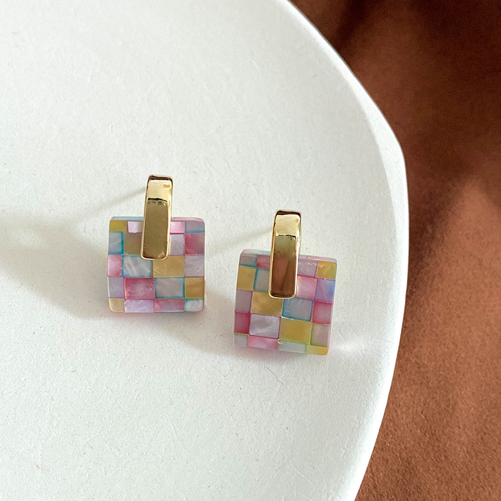 Elegant Vintage Square 18K Gold Plated Drop Earrings with Colorful Shell Inlay