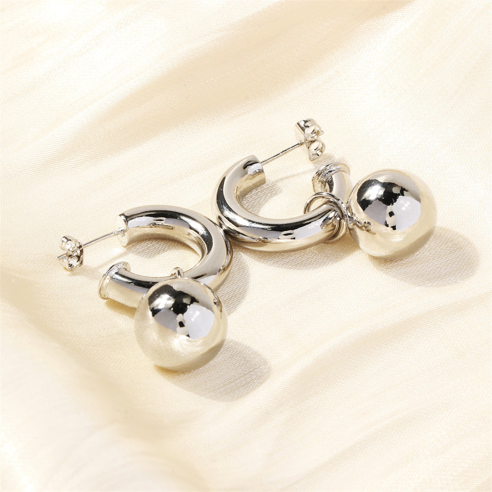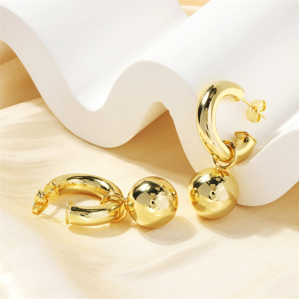 1 Pair 18K Gold Plated C Shape Ball Drop Earrings