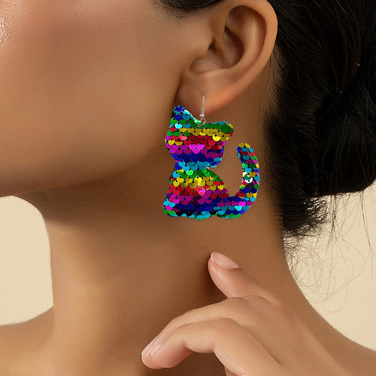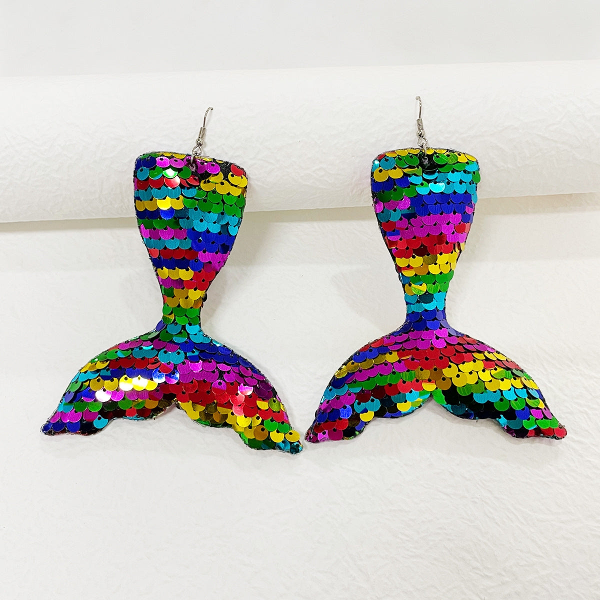 1 Pair Gradient Mermaid Tail Cat Drop Earrings - Reflective Resin Statement Jewelry