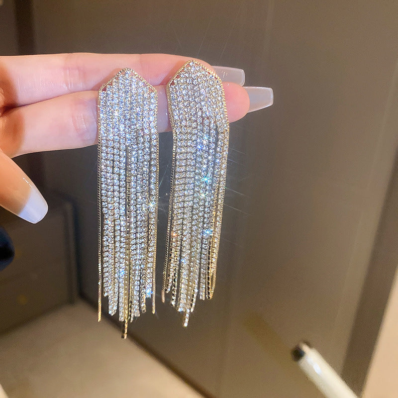 1 Pair Bohemian Crystal Tassel Rhinestone Drop Earrings 2024 Trendy Statement Jewelry