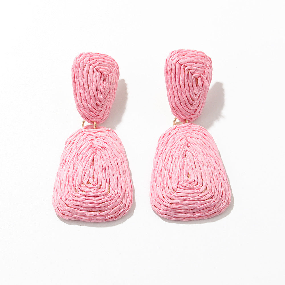 Pink two-trapezoidal straw rope drop earrings