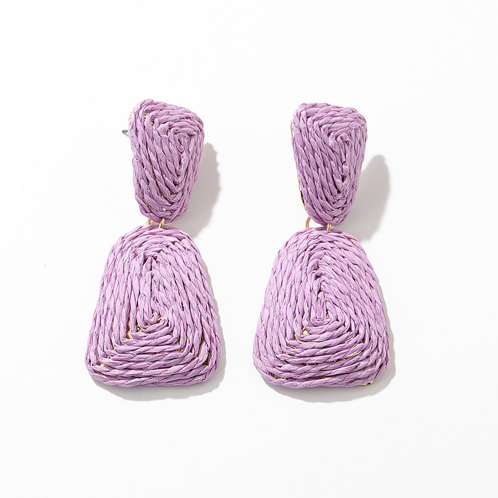 Purple two-trapezoidal straw rope drop earrings