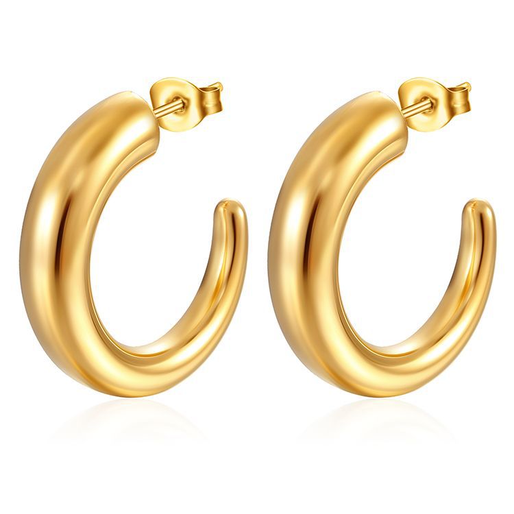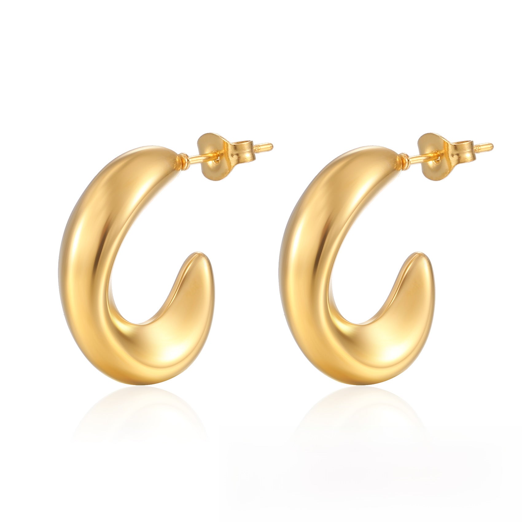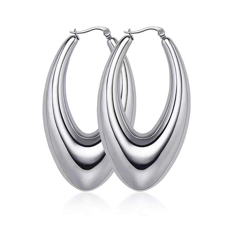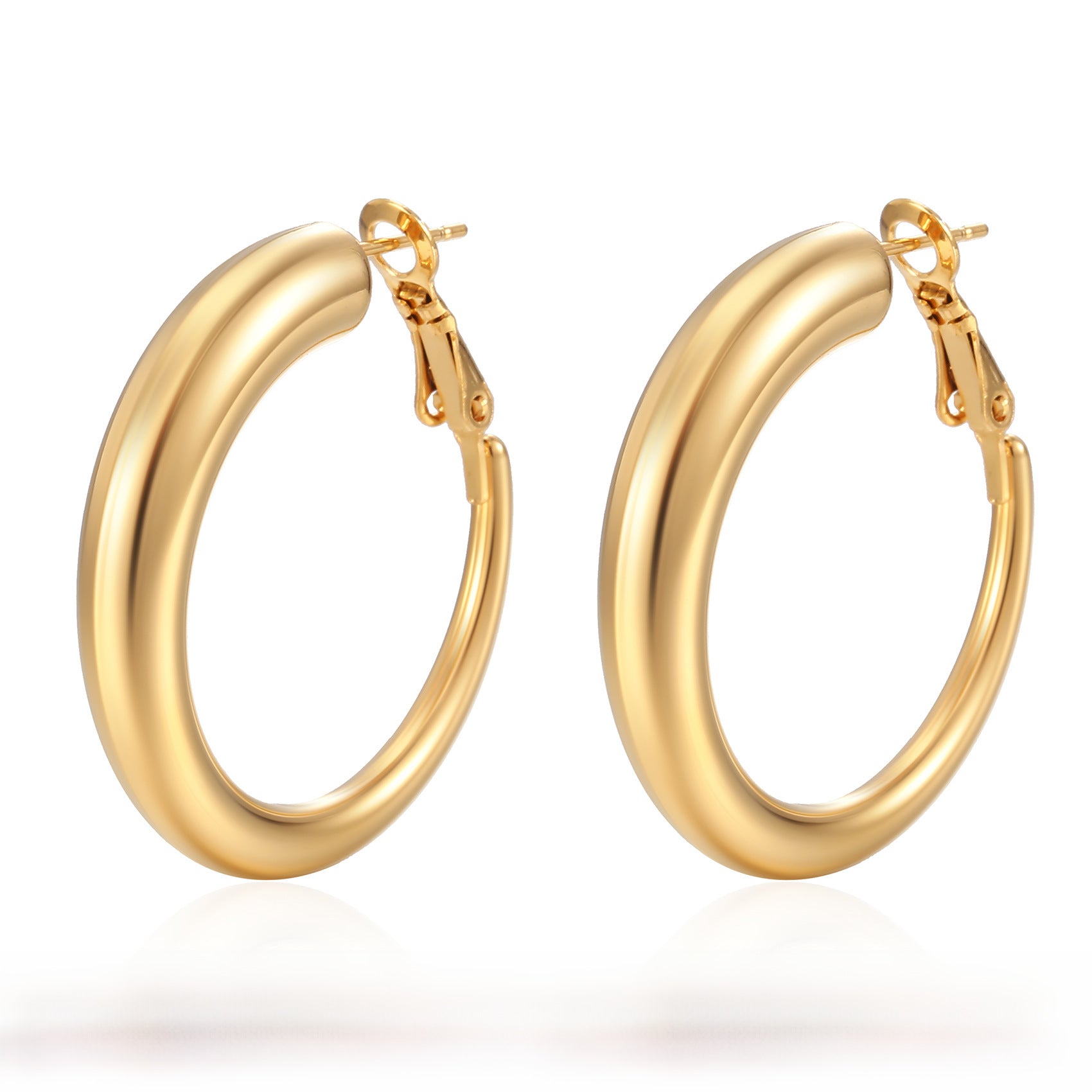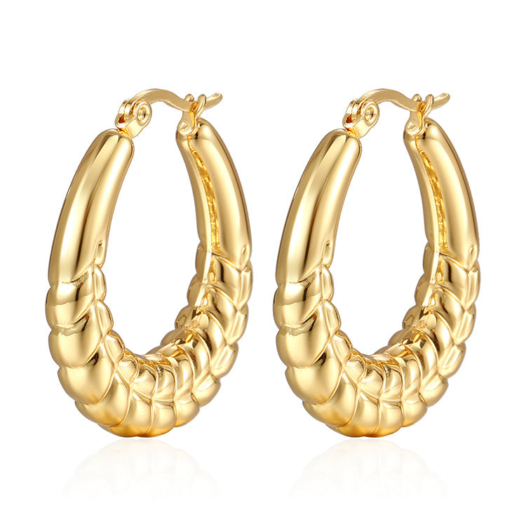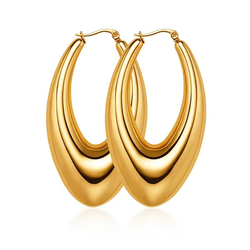 1 Pair Fashion 18K Gold Plated Stainless Steel Oval Hoop Earrings