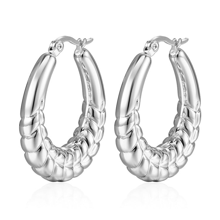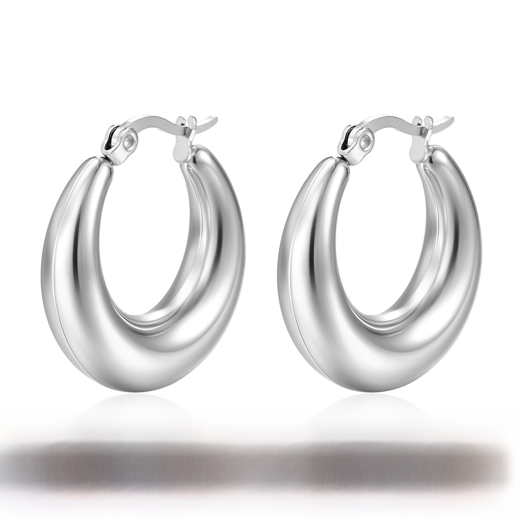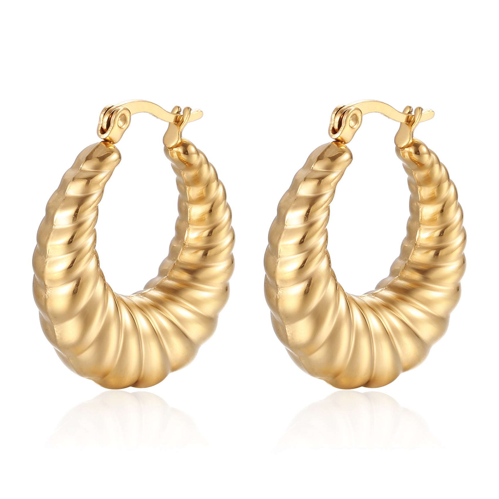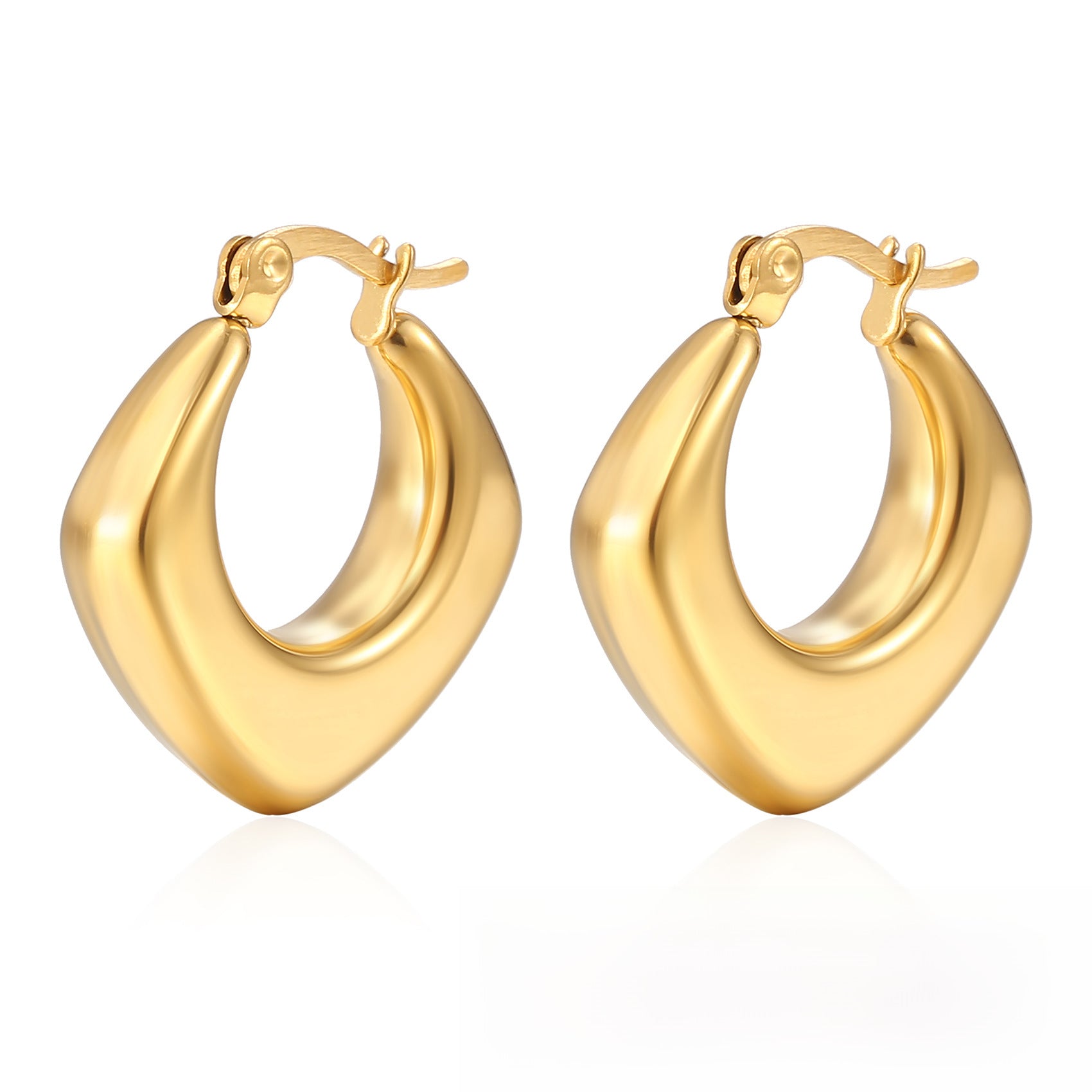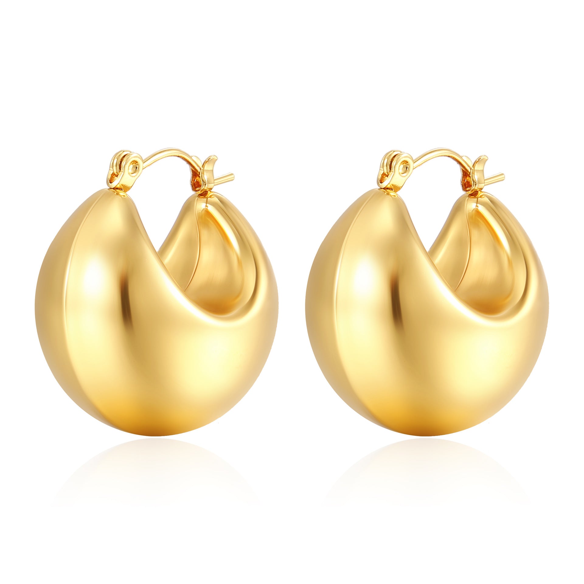 1 Pair Fashion 18K Gold Plated Stainless Steel Oval Hoop Earrings
