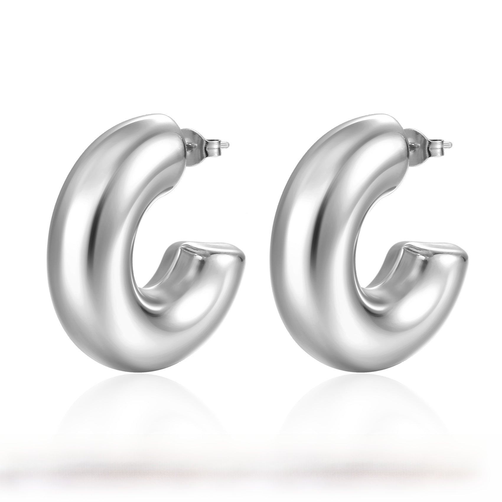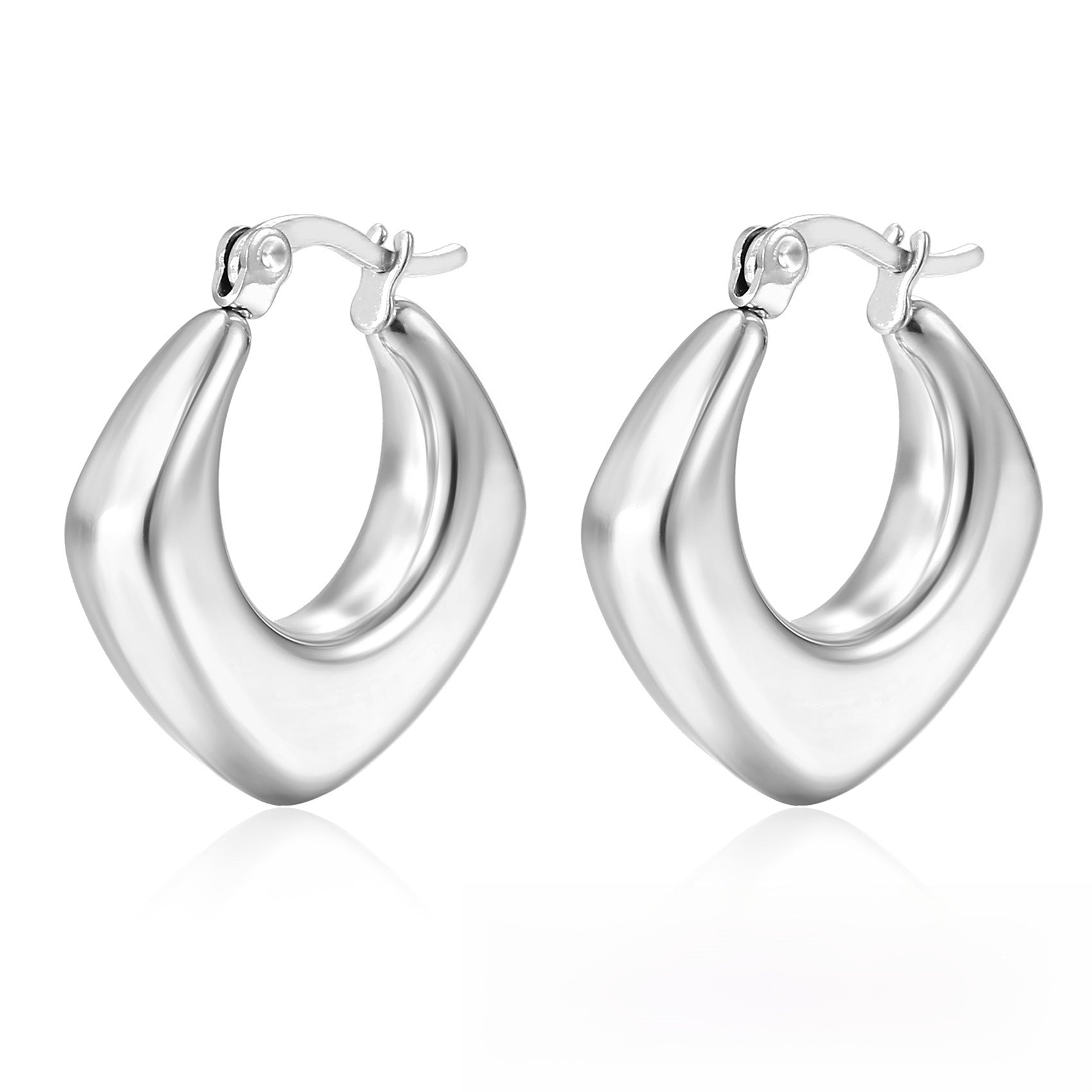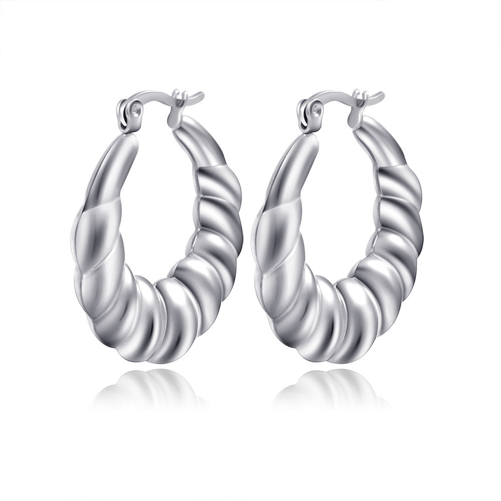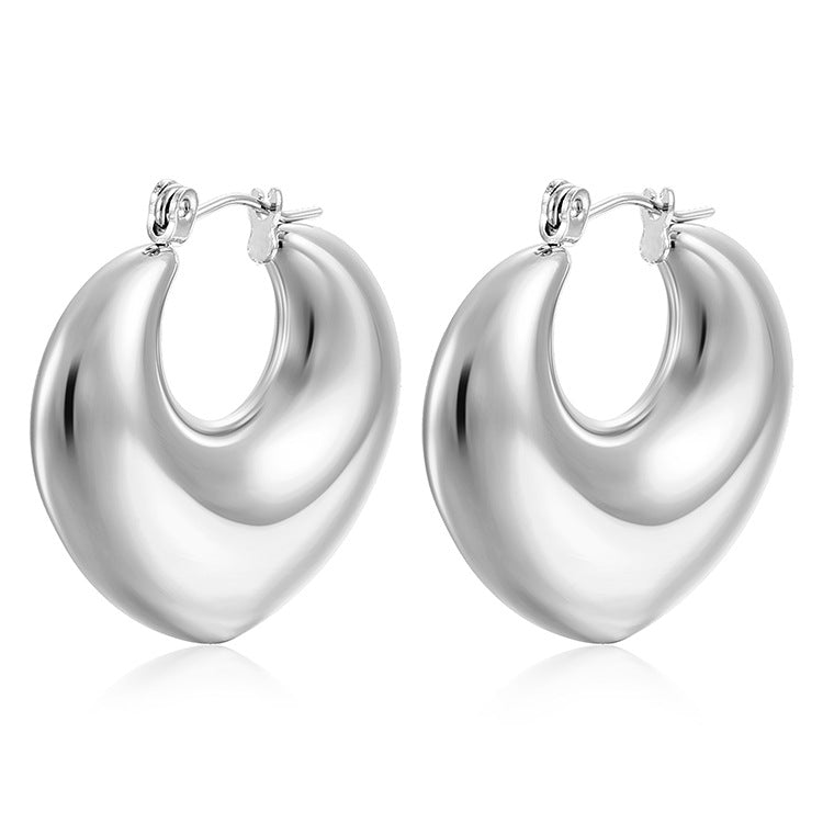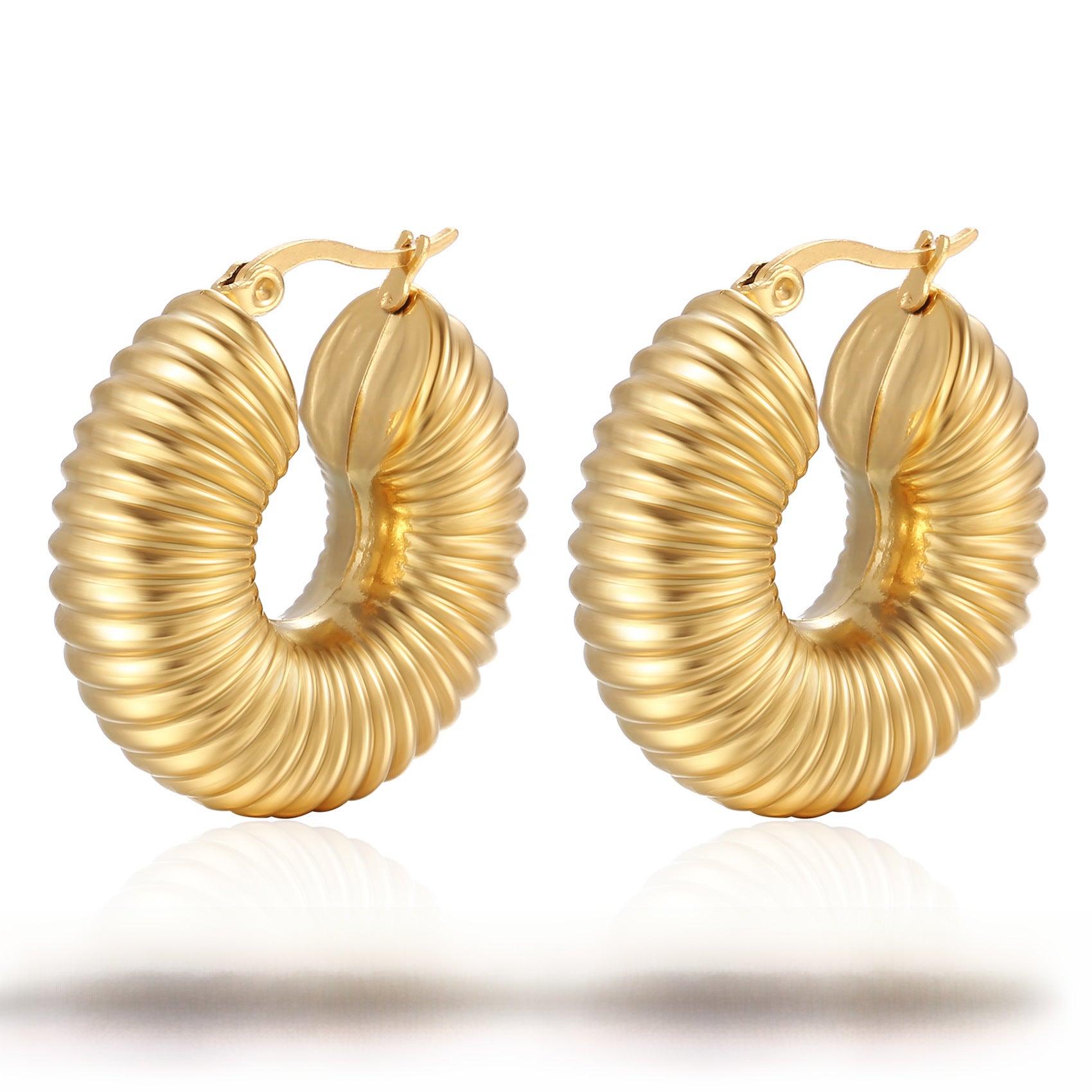1 Pair Fashion 18K Gold Plated Stainless Steel Oval Hoop Earrings