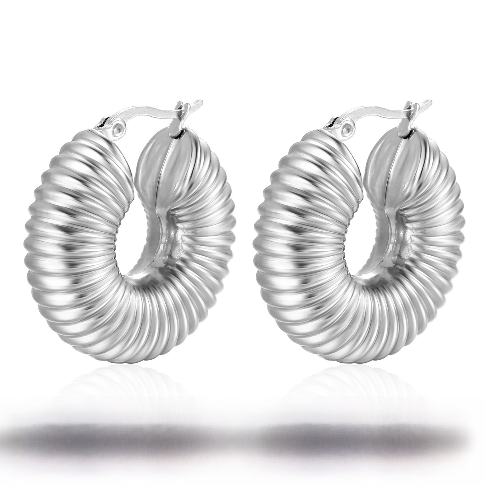 HEIGHT 31MM HOLLOW DROP EARRINGS STEEL COLOR MS-197MS