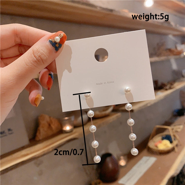 1 Pair Fashion Tassel Imitation Pearl Beaded Gold Plated Women's Long Drop Earrings