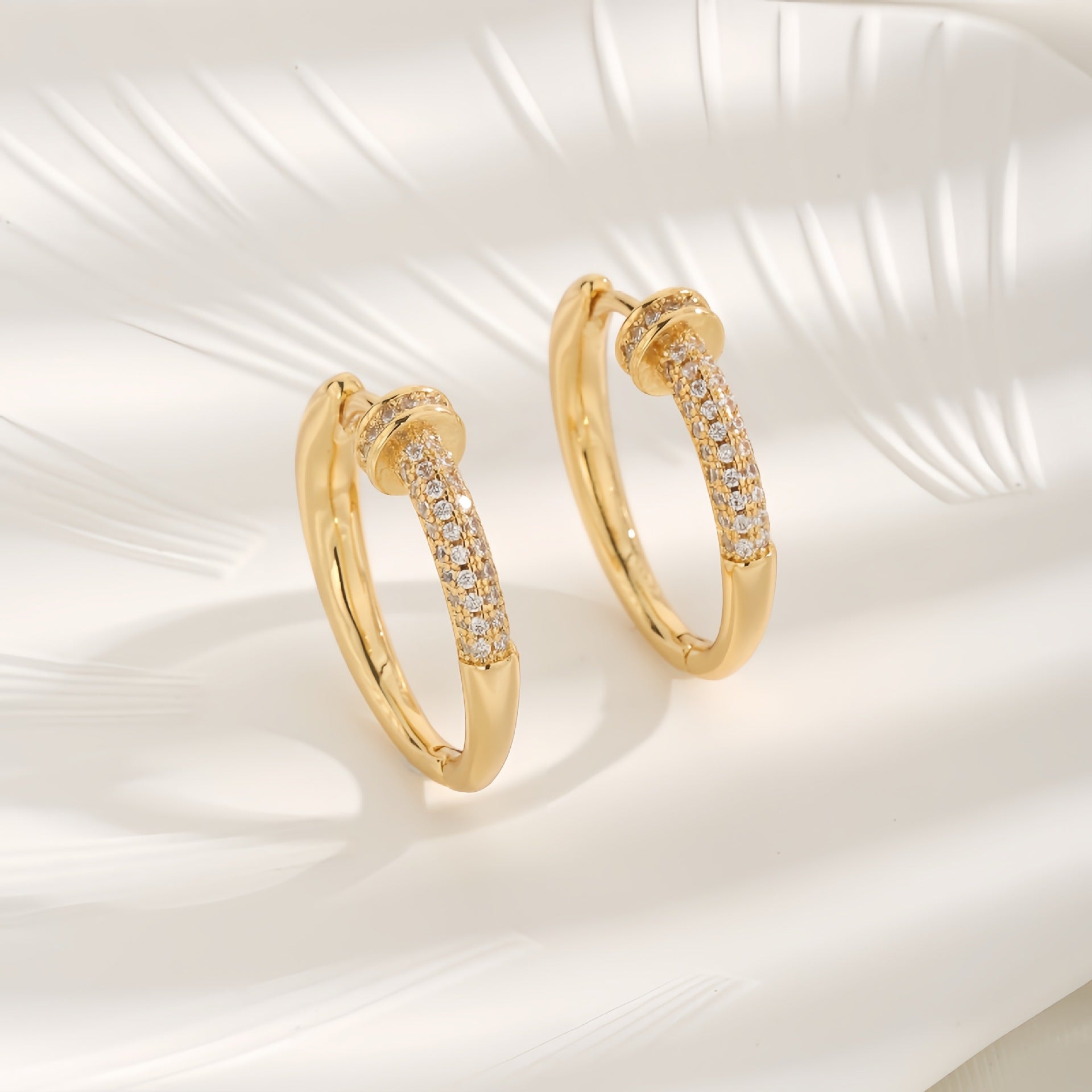 1 Pair French Style Geometric Round Inlay Copper Zircon 18K Gold Plated Earrings with Elegant Nail Design