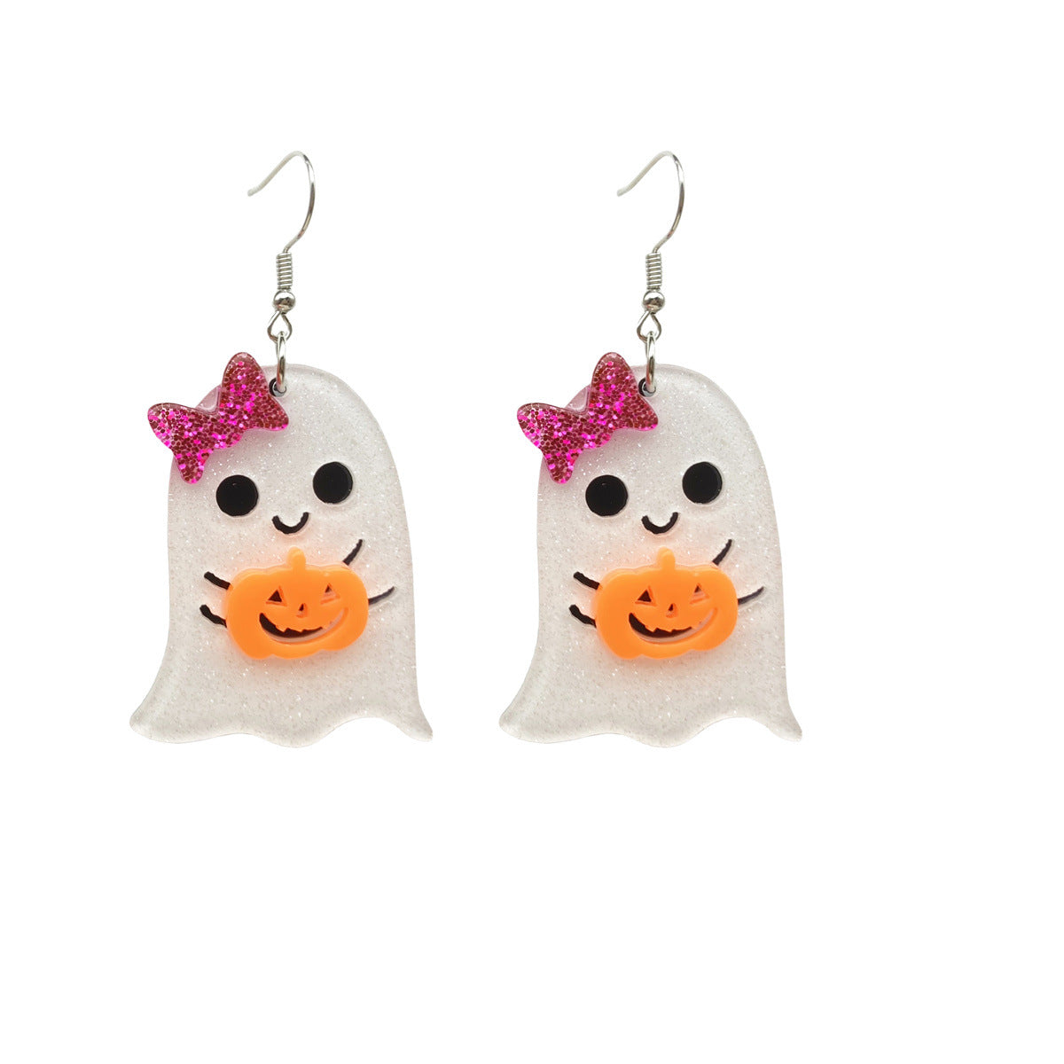 1 Pair Halloween Pumpkin Ghost Skull Acrylic Drop Earrings with Flower Bow Knot Design