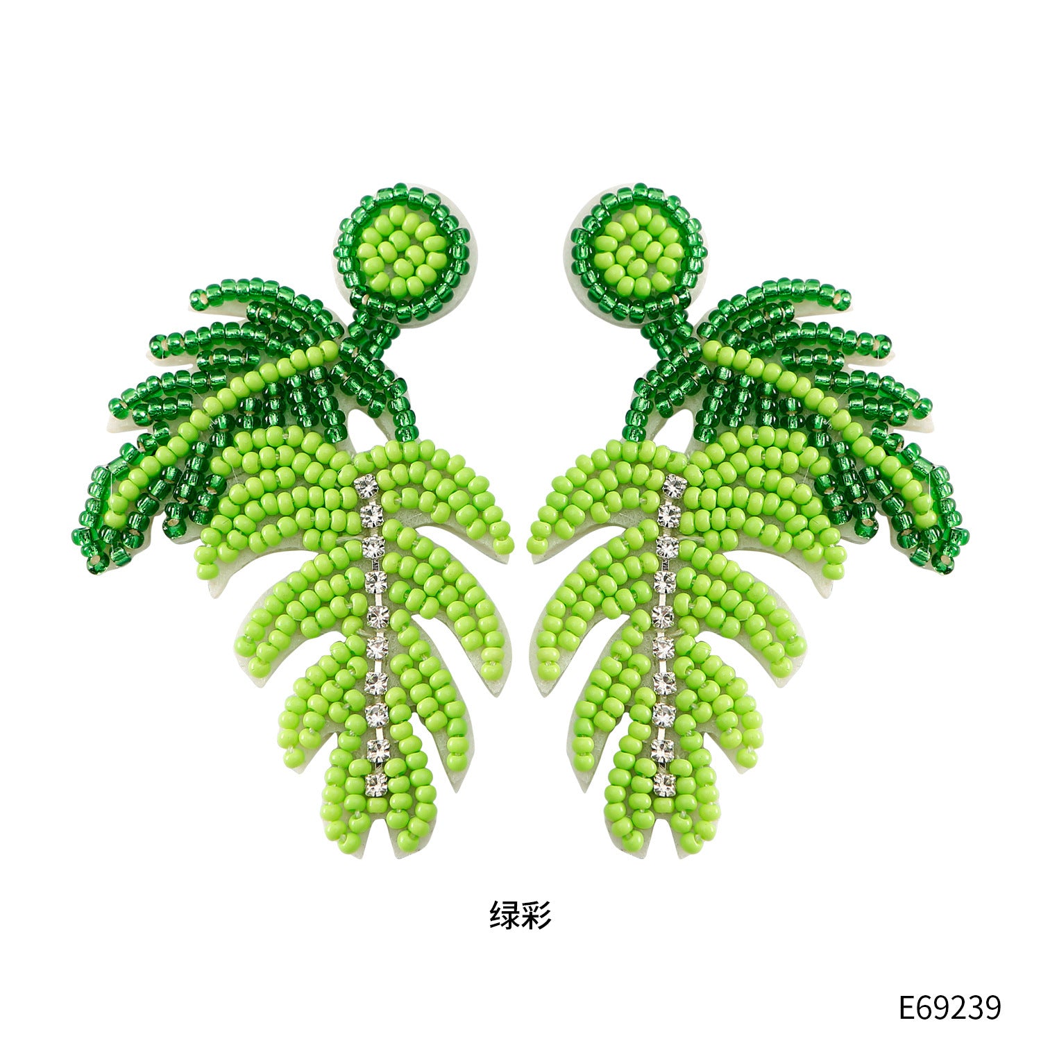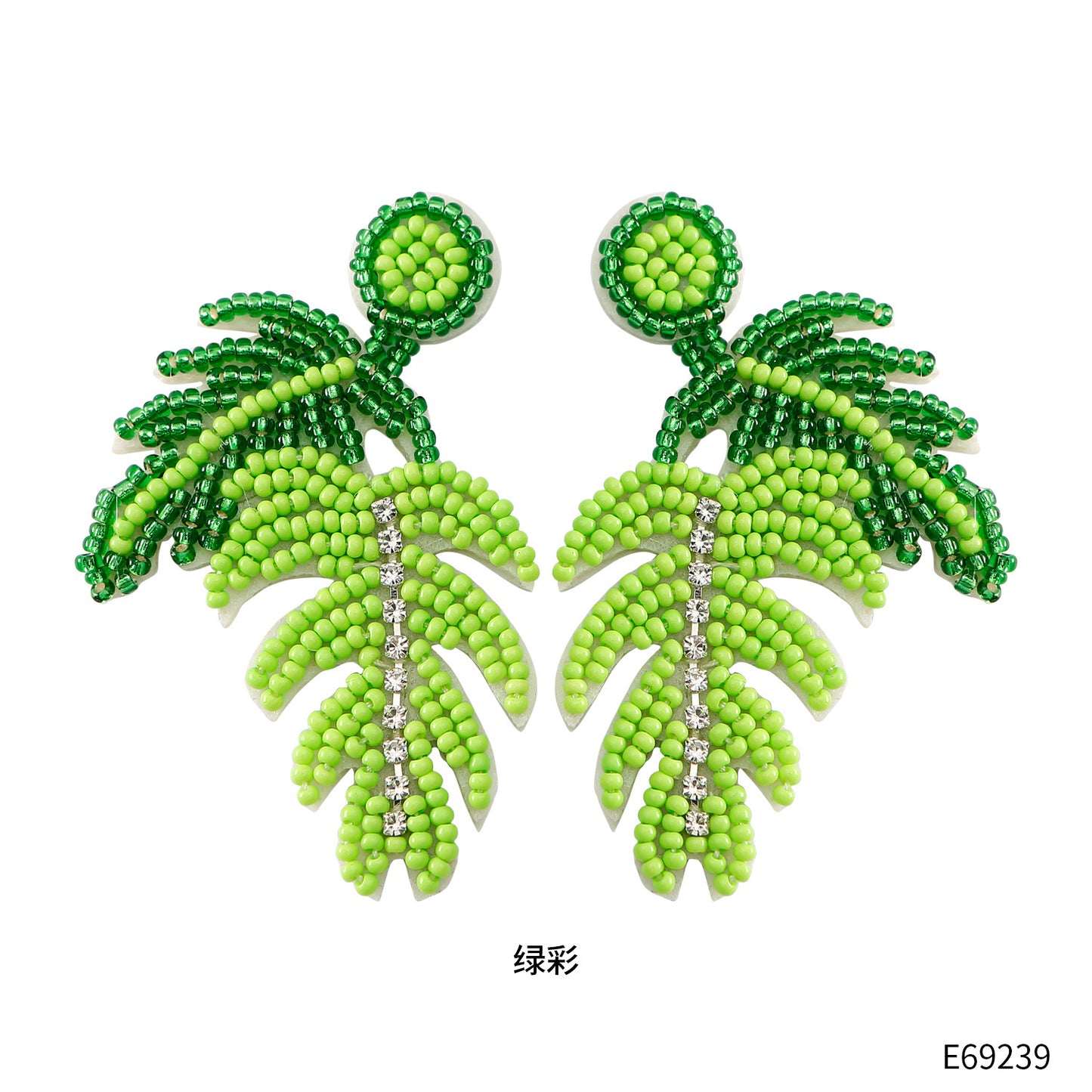 Hawaiian Bohemian Green Monstera Seed Bead Drop Earrings