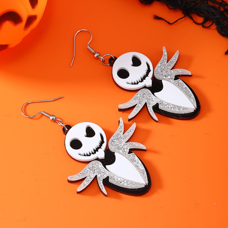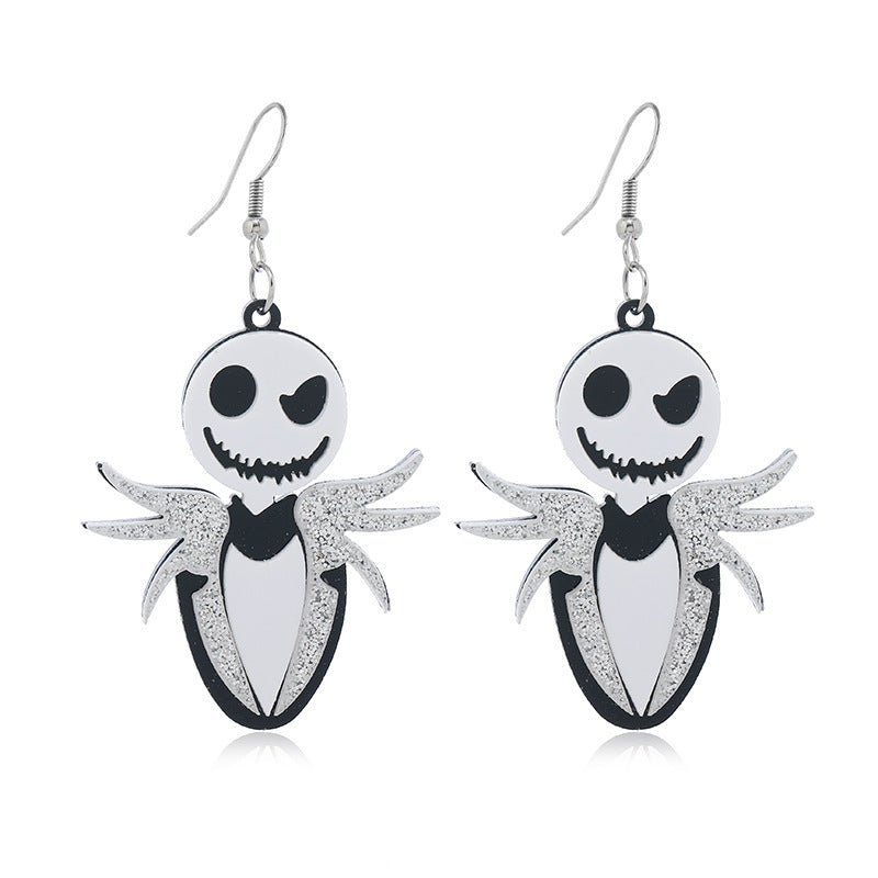 1 Pair Gothic Skull Ghost Drop Earrings with Butterfly Accents