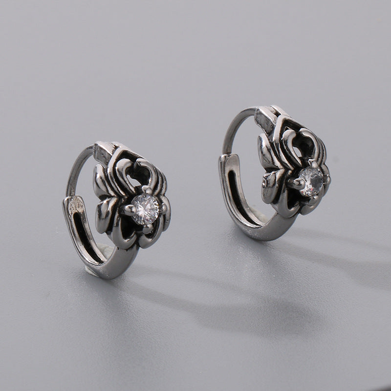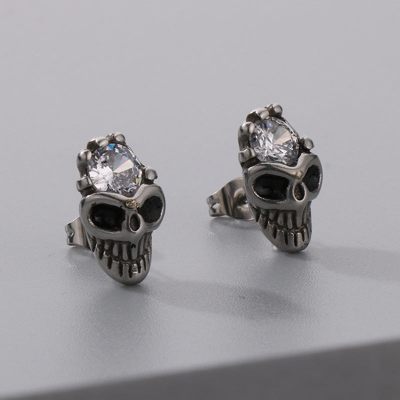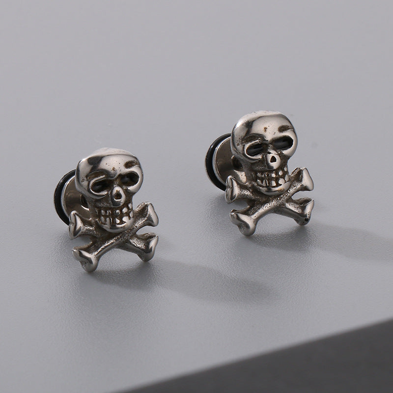 1 Pair Gothic Punk Skull Cross Sword Zircon Stainless Steel Earrings