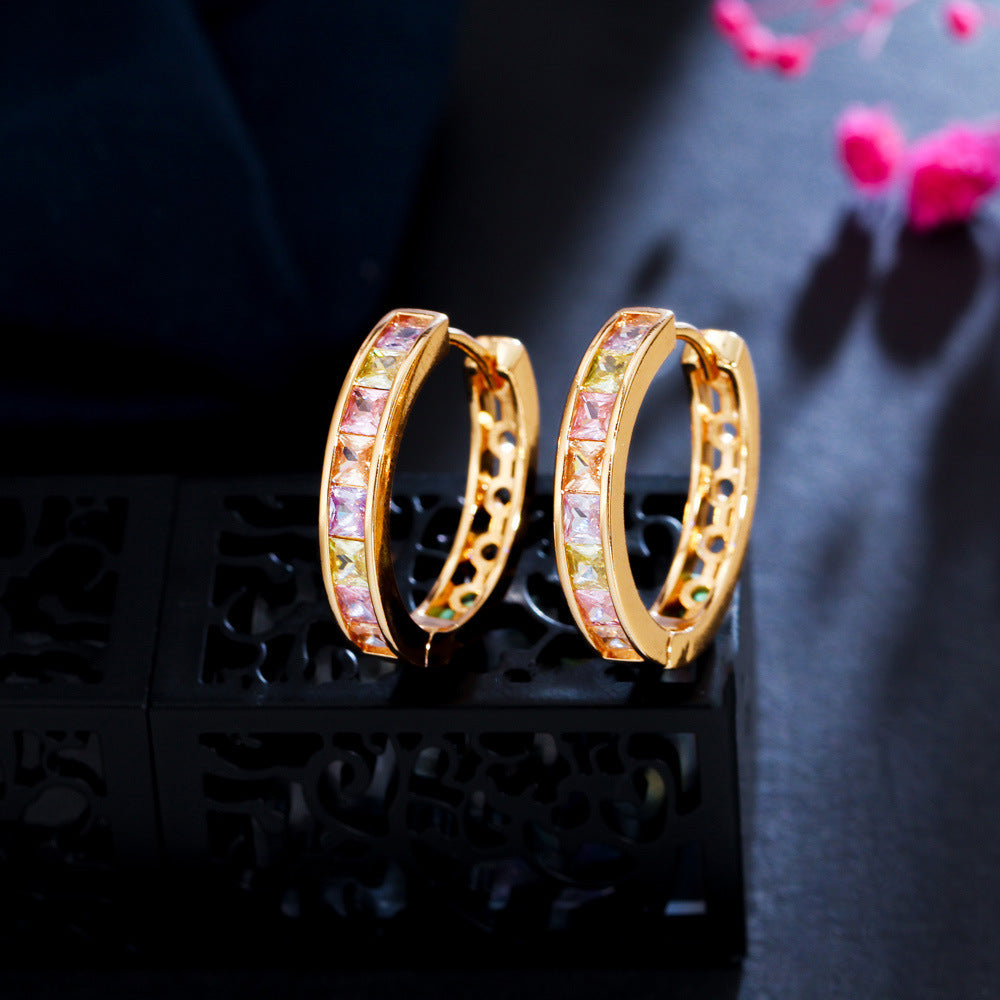 IG Style Elegant Zircon Inlay Circle Earrings - Colorful Geometric Hoops