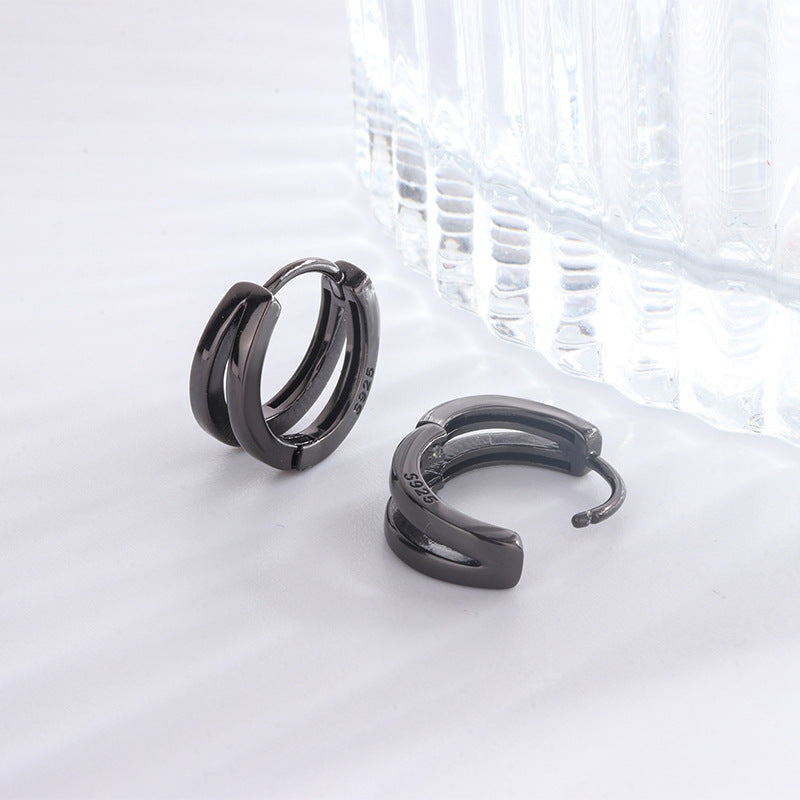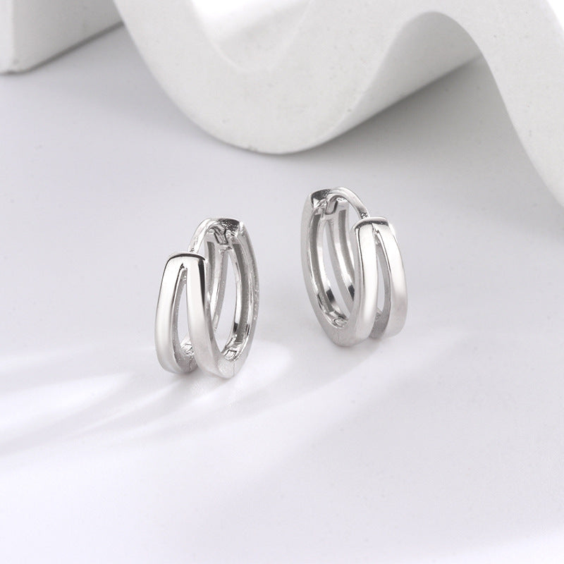 1 Pair Unisex Geometric Double Layer Sterling Silver Hoop Earrings