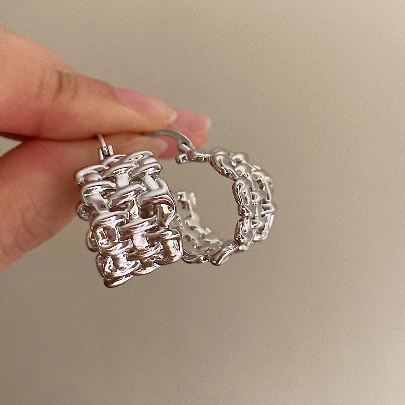 1 Pair Geometric C Shape Twisted Copper Mesh Hoop Earrings