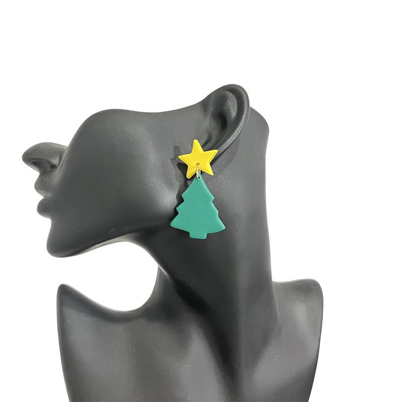 1 Pair Modern Style Christmas Tree & Snowman Polymer Clay Drop Earrings