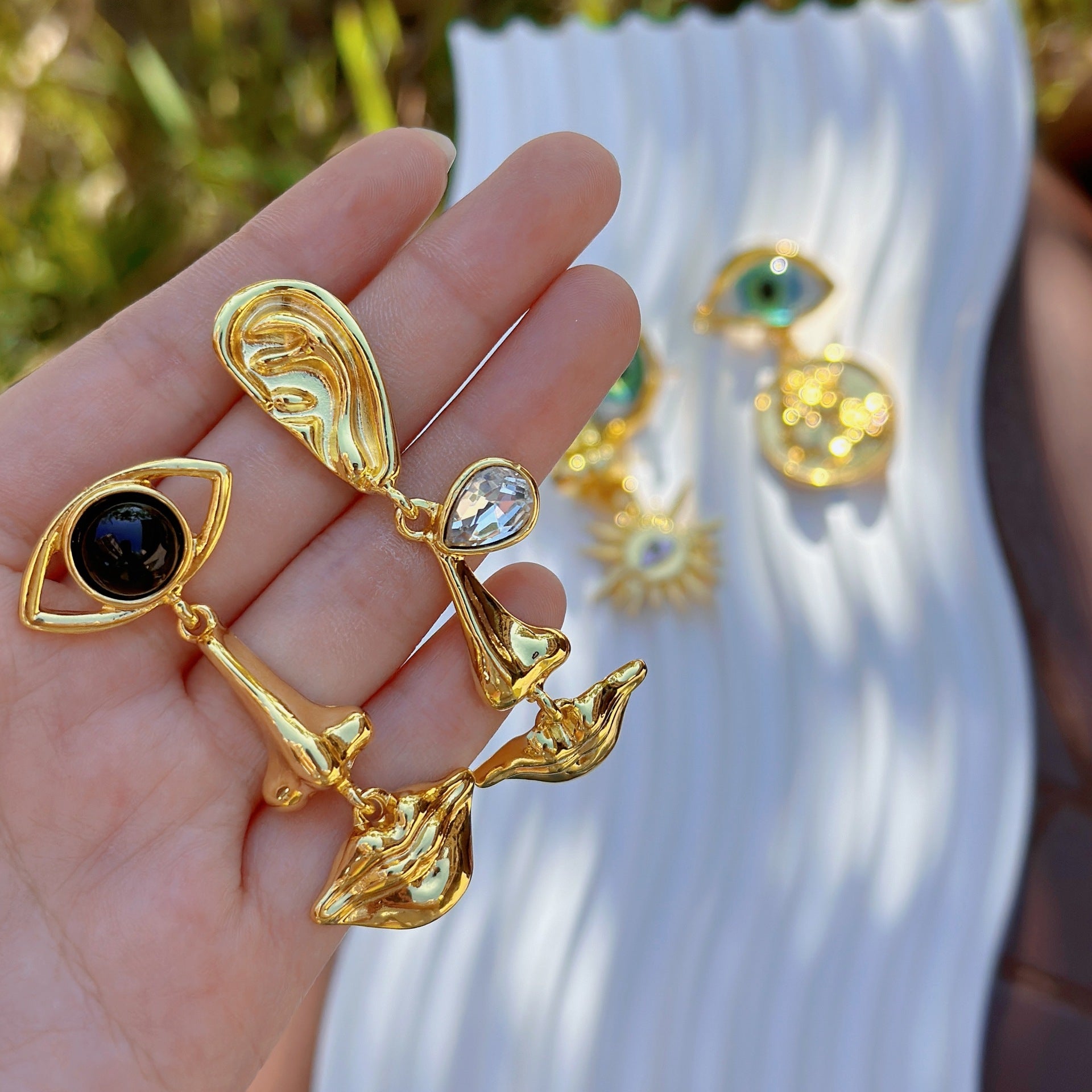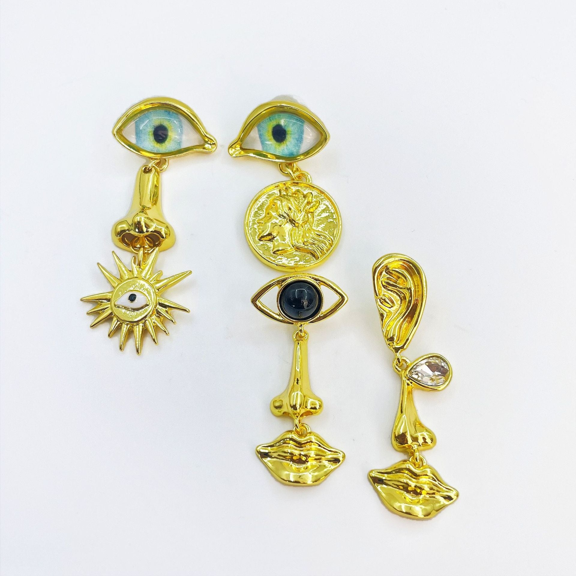 Retro Devil's Eye Alloy Layered Drop Earrings for Women