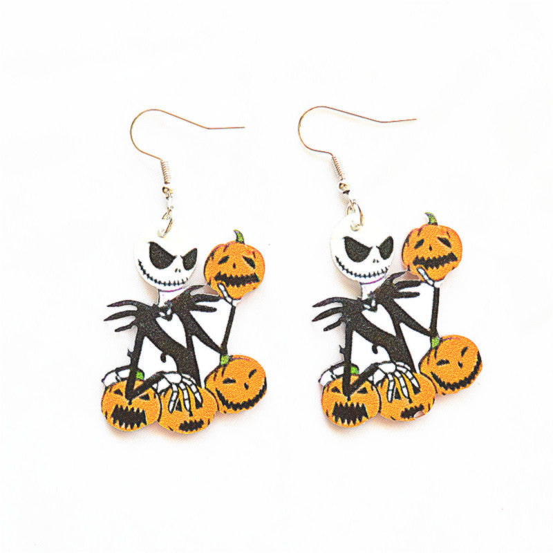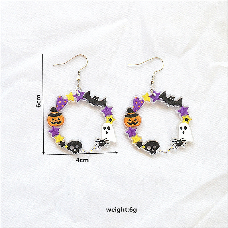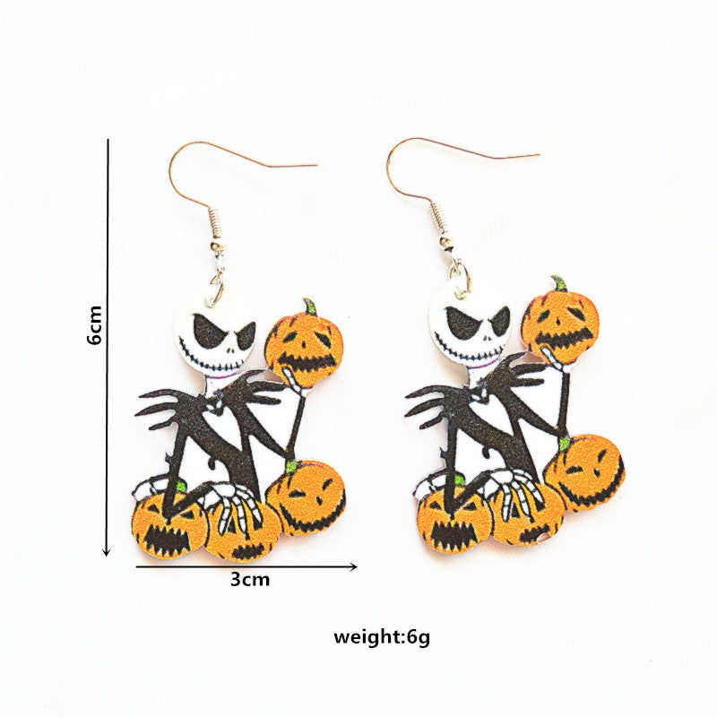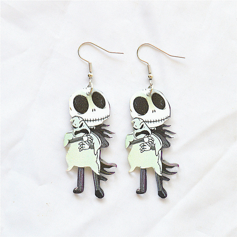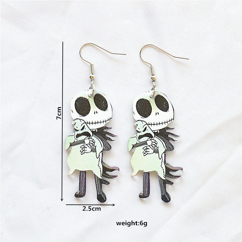 1 Pair Retro Halloween Acrylic Alloy Drop Earrings with Ghost, Skull, and Spider Design