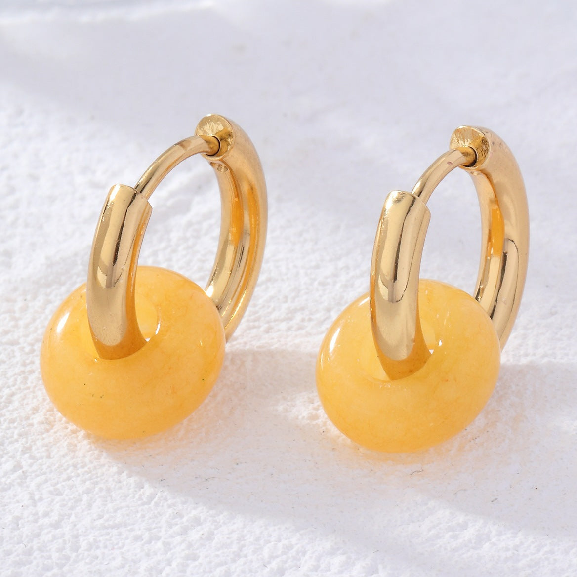 Retro Round Plating Stainless Steel Natural Stone Hoop Earrings