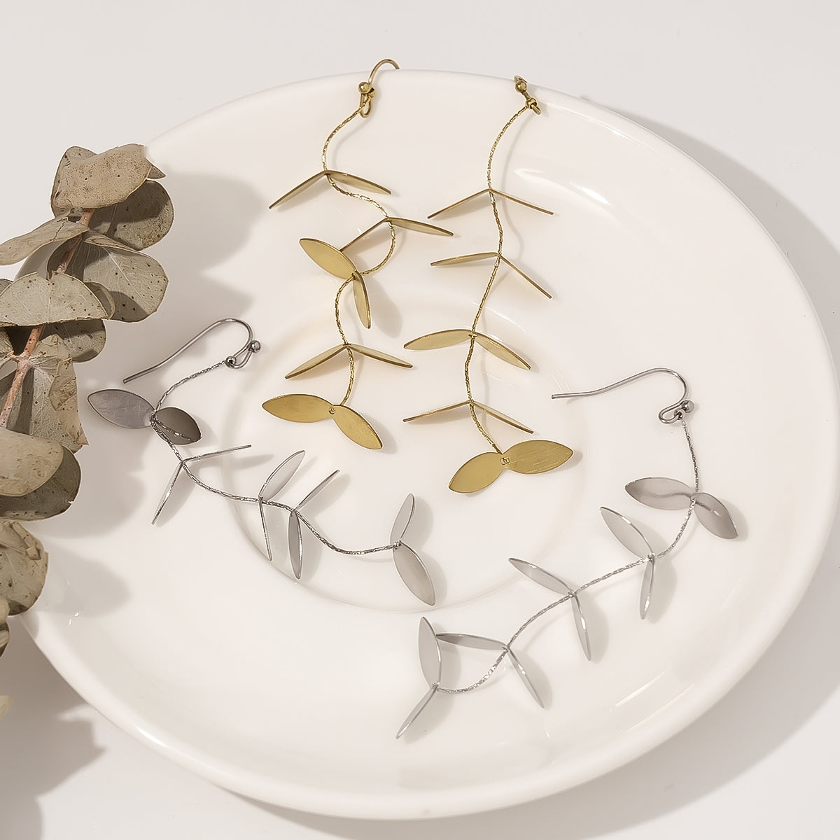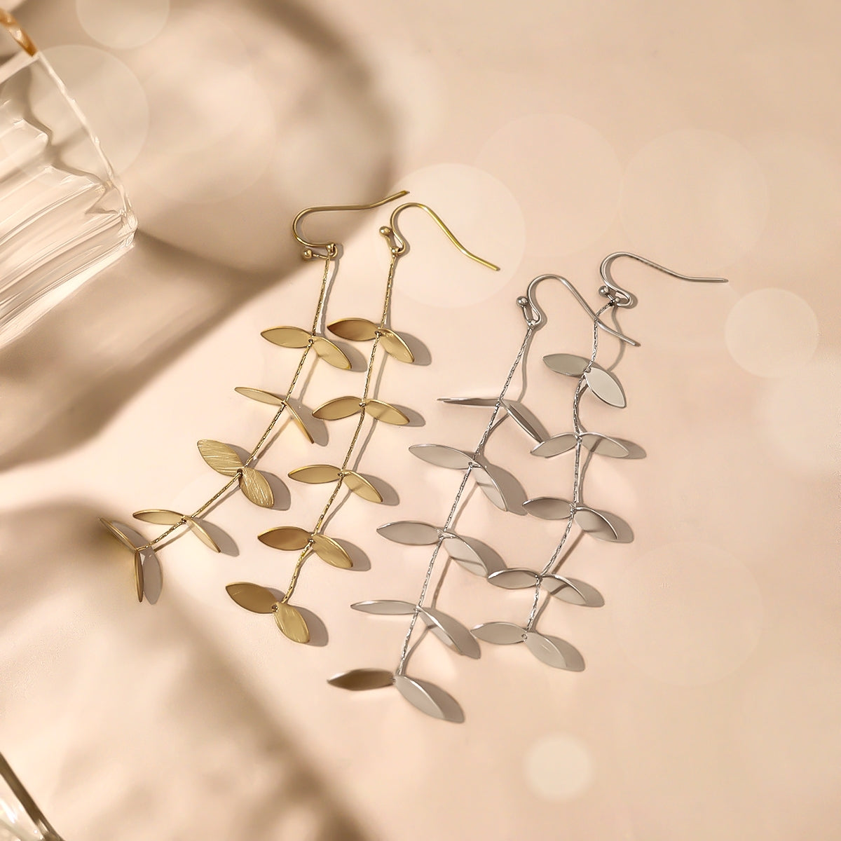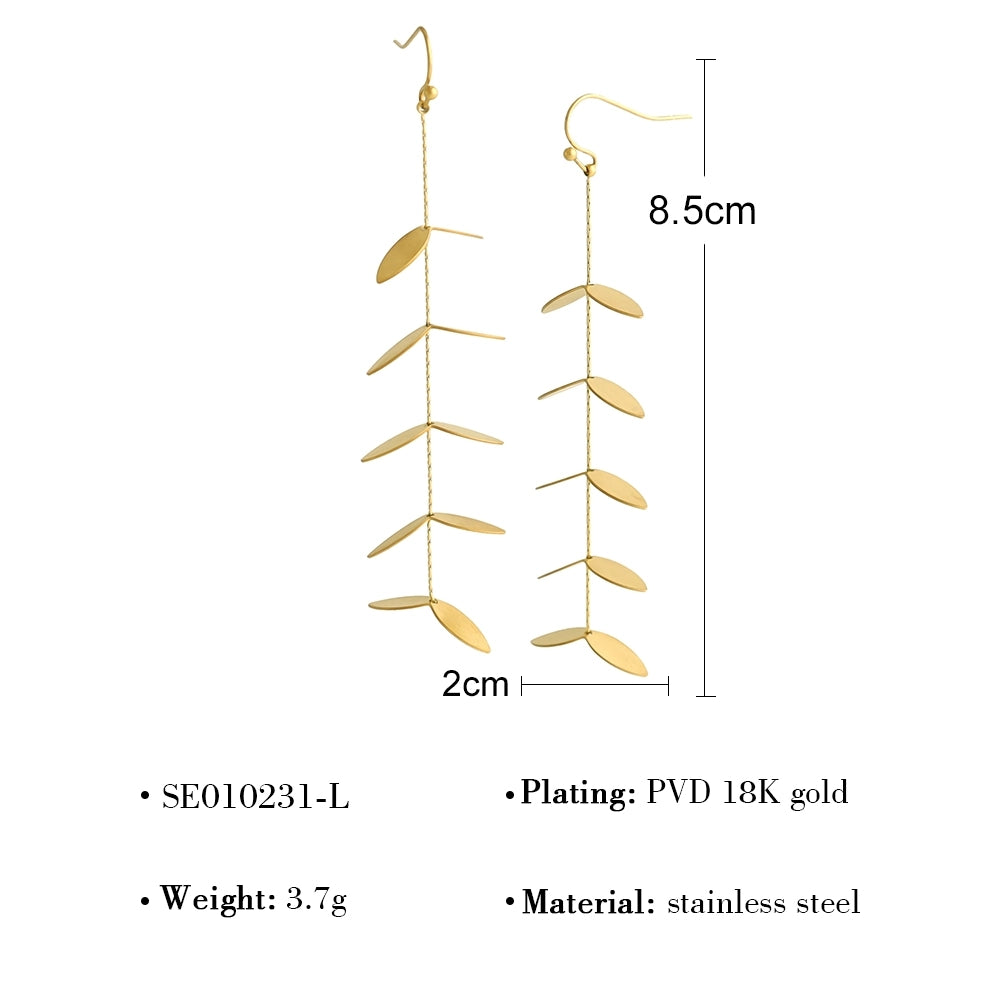 1 Pair Retro Leaf Tassel 18K Gold Plated Stainless Steel Drop Earrings
