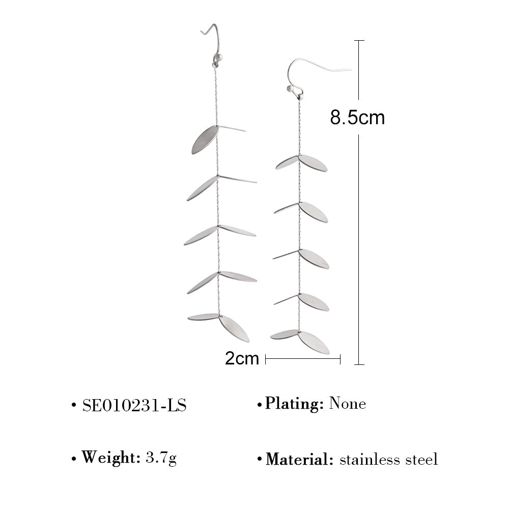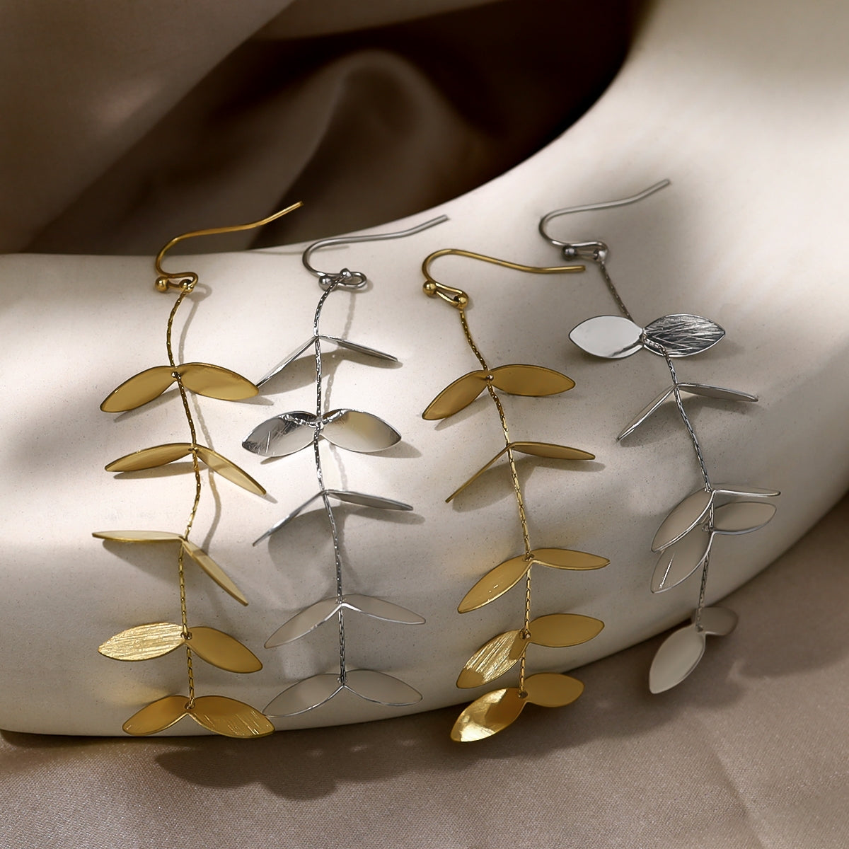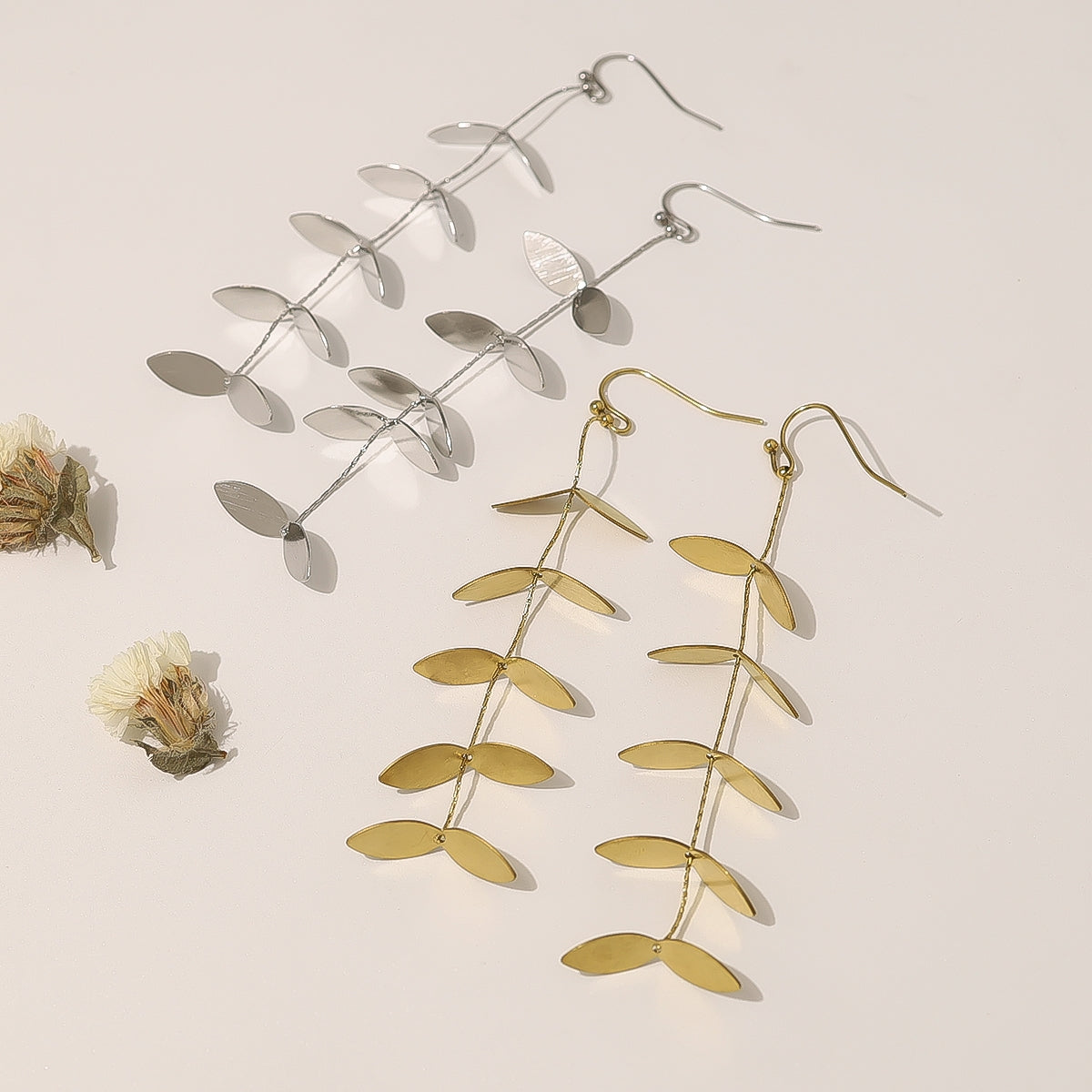 1 Pair Retro Leaf Tassel 18K Gold Plated Stainless Steel Drop Earrings