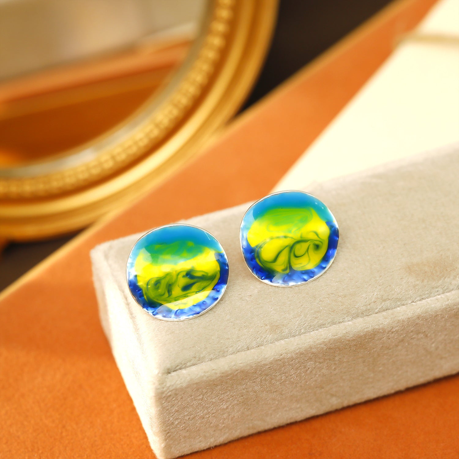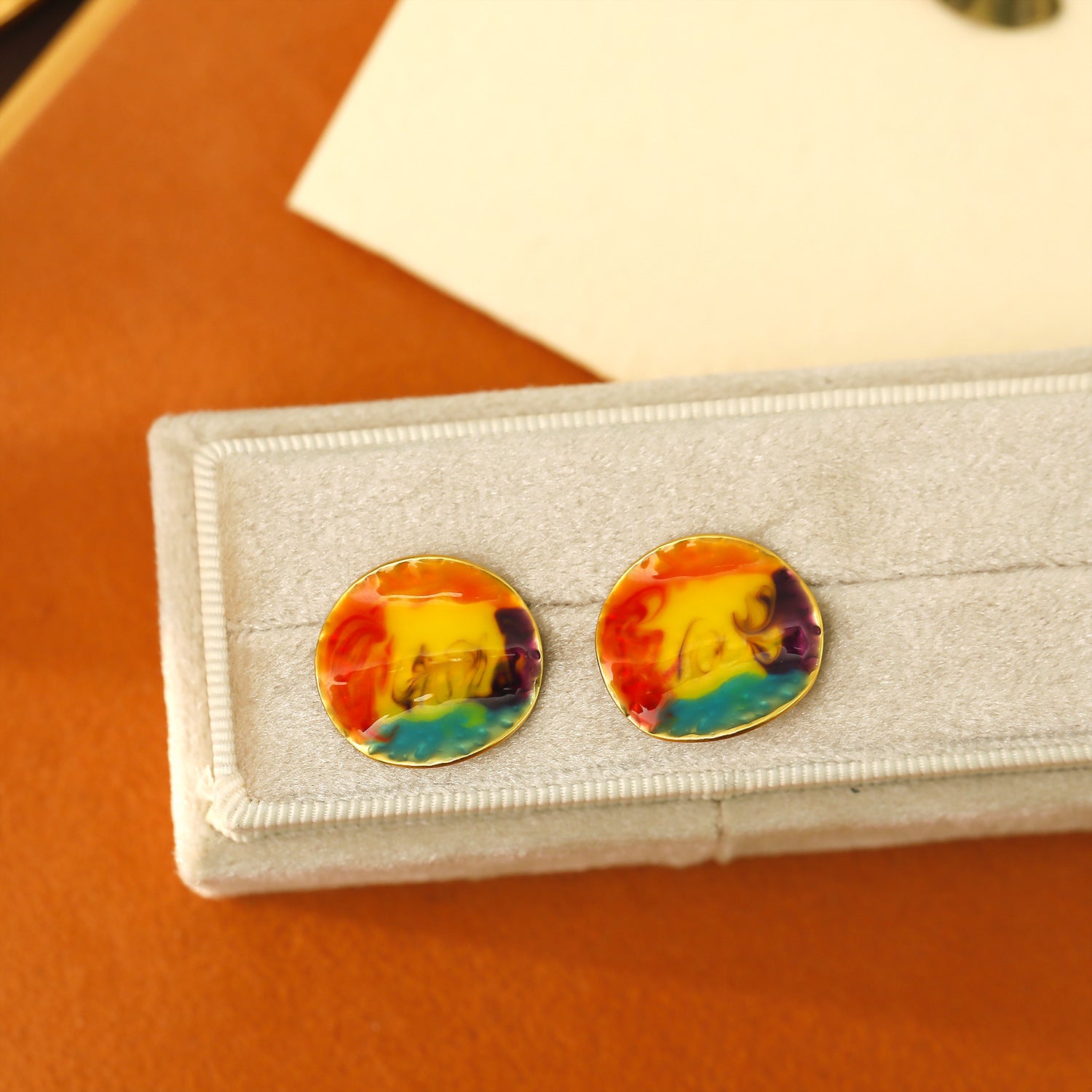 1 Pair Bohemian Geometric Enamel Abstract Design 18K Gold Plated Ear Studs