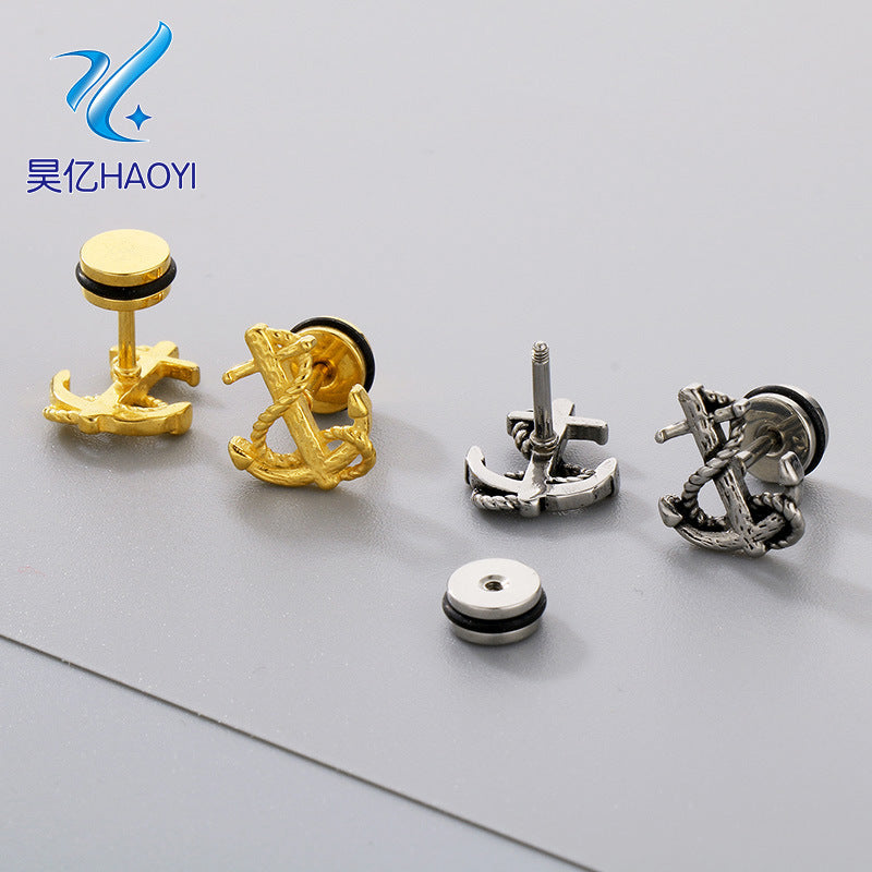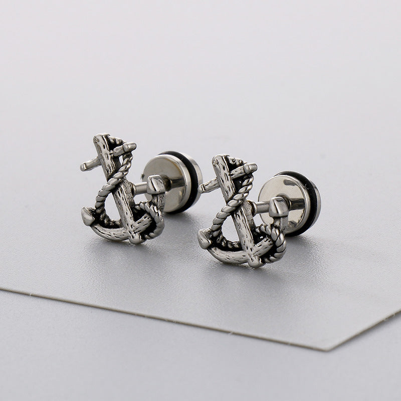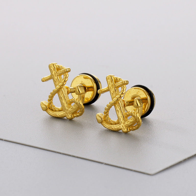 1 Pair Vintage Cross Anchor 18K Gold Plated Stainless Steel Ear Studs