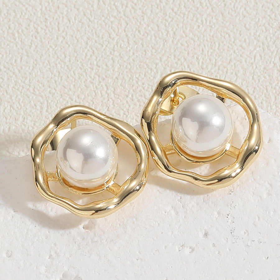 1 Pair Elegant Deer Inlay Pearl Zircon 14k Gold Plated Stud Earrings