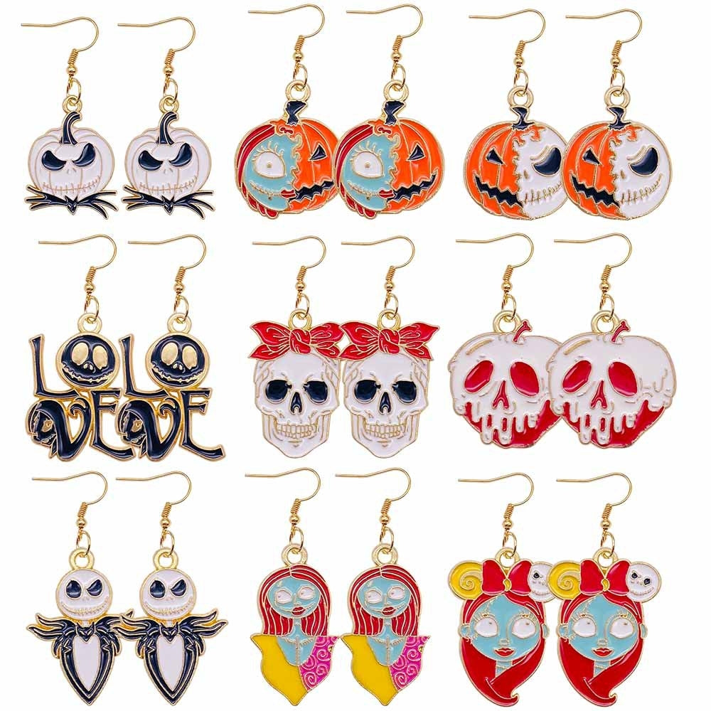 1 Pair Halloween Pumpkin Ghost Alloy Drop Earrings with Star Bow Knot Design