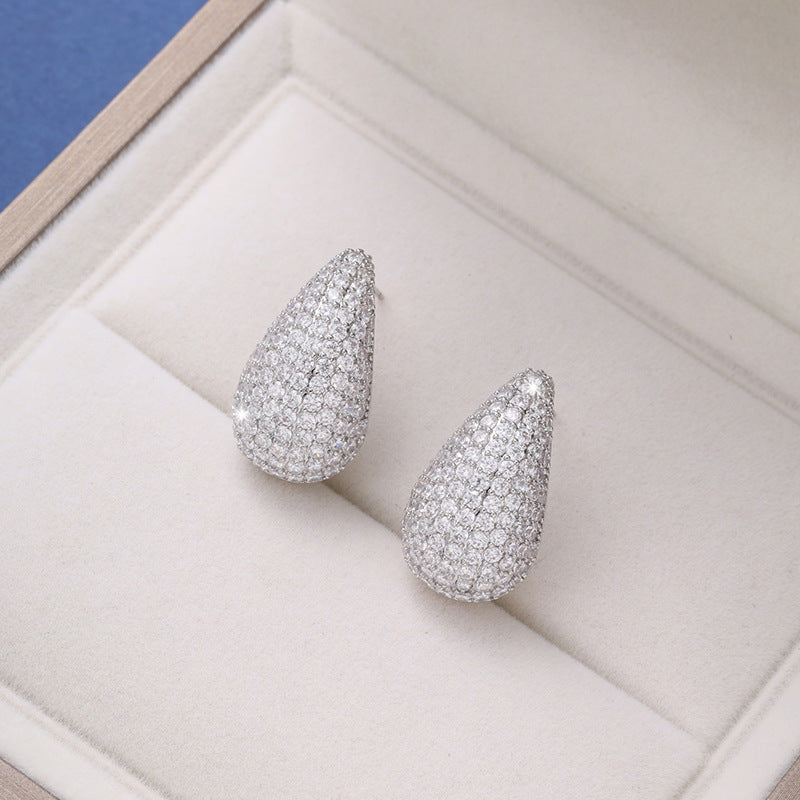 1 Pair Elegant Water Droplet Rhinestone 18k Gold Plated Ear Studs
