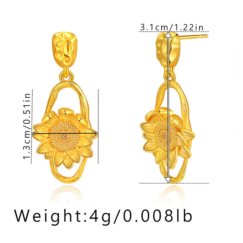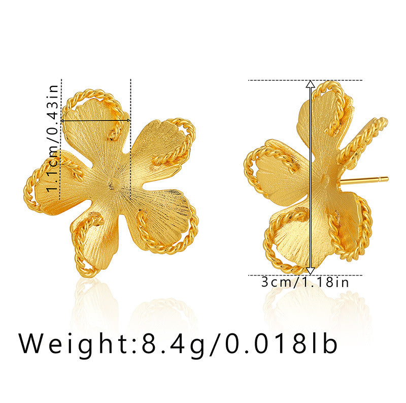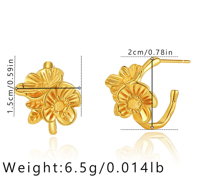1 Pair Minimalist Flower Design 18k Gold Plated Copper Drop Earrings
