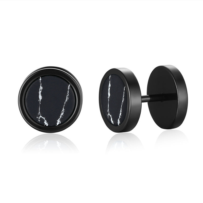 1 Pair Minimalist Titanium Steel Turquoise and Tiger Eye Stone Dumbbell Stud Earrings